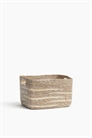 Небольшая корзина для хранения ручной работы из плетеных водорослей с полосами более светлого оттенка. Ручки на коротких сторонах. Поскольку корзина изготовлена из натуральных материалов, внешний вид может варьироваться от экземпляра к экземпляру. Высота 16 см. Глубина 18 см. Ширина 24 см.