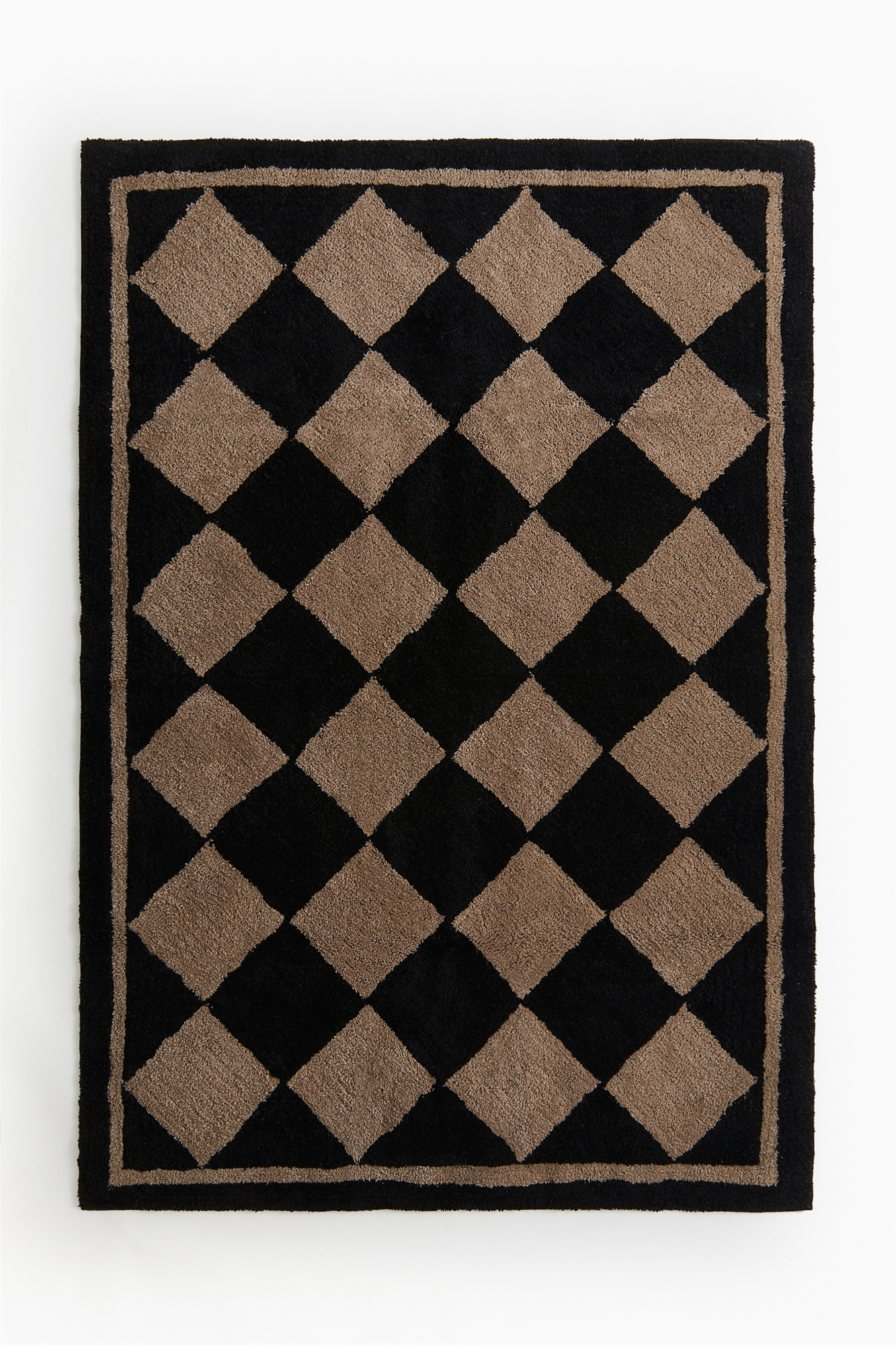 Ковер с коротким мягким ворсом, украшенный смелым рисунком арлекина с однотонной каймой по краям. Необходимая вещь для тех, кто ценит дизайн вне времени и комфорт.