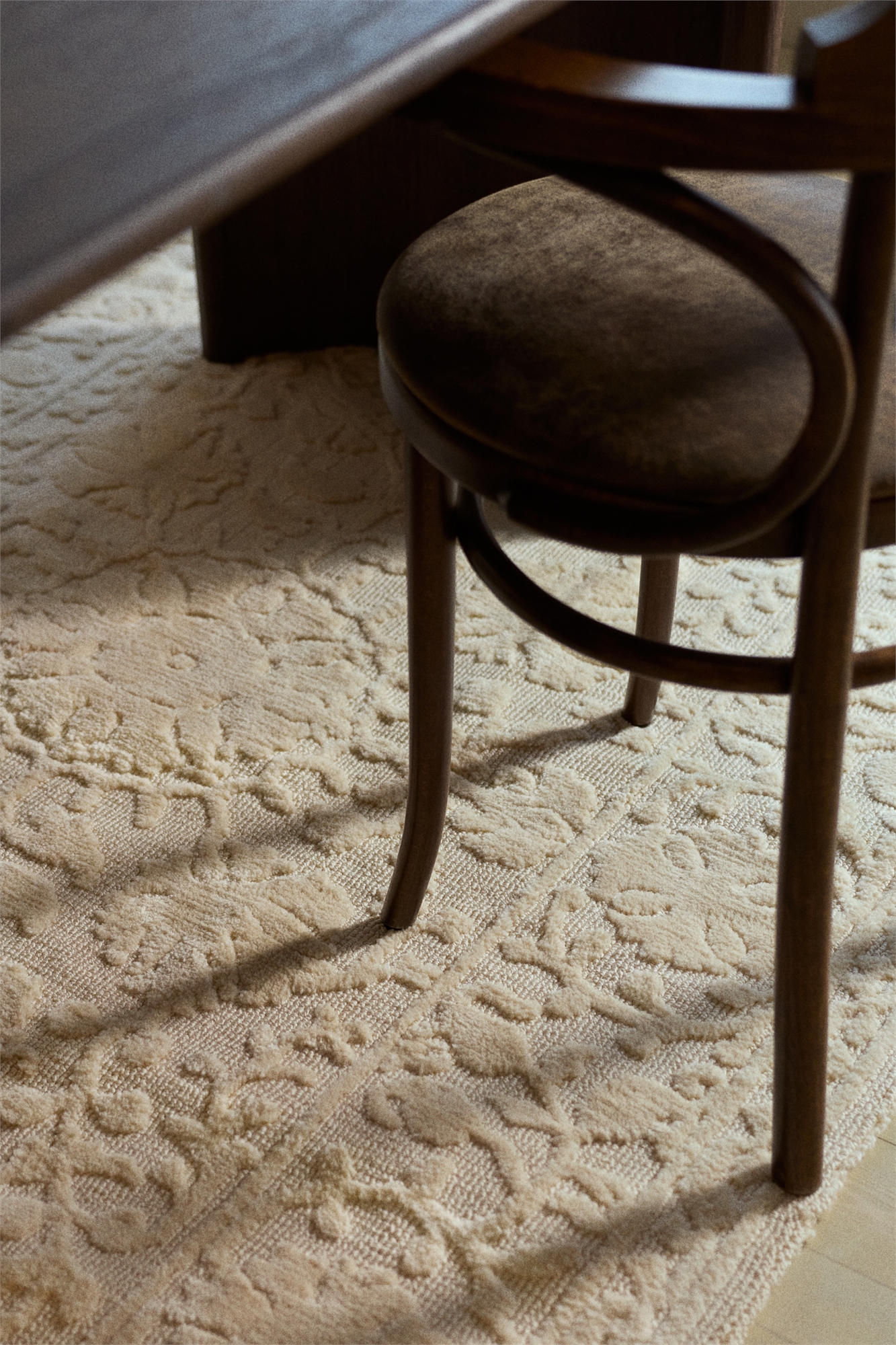 Вязаный, приятно мягкий ковер с рельефным, ворсистым узором. Идеальный ковер, чтобы привнести гармонию в комнату.
