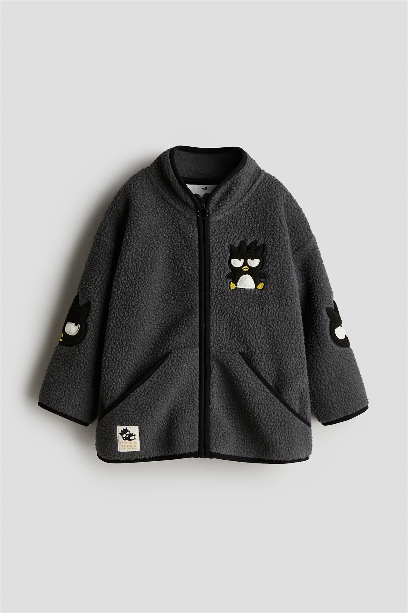 H&M x Hello Kitty and Friends. Веселая и яркая коллекция с уютными моделями, милыми принтами и игривыми аксессуарами. Откройте для себя мир Hello Kitty и всех наших пушистых любимцев! Свободная куртка из мягкого тедди с аппликациями и узким трикотажным переплетением. Воротник-стойка, застежка на молнию спереди, спущенные плечи и передние карманы.