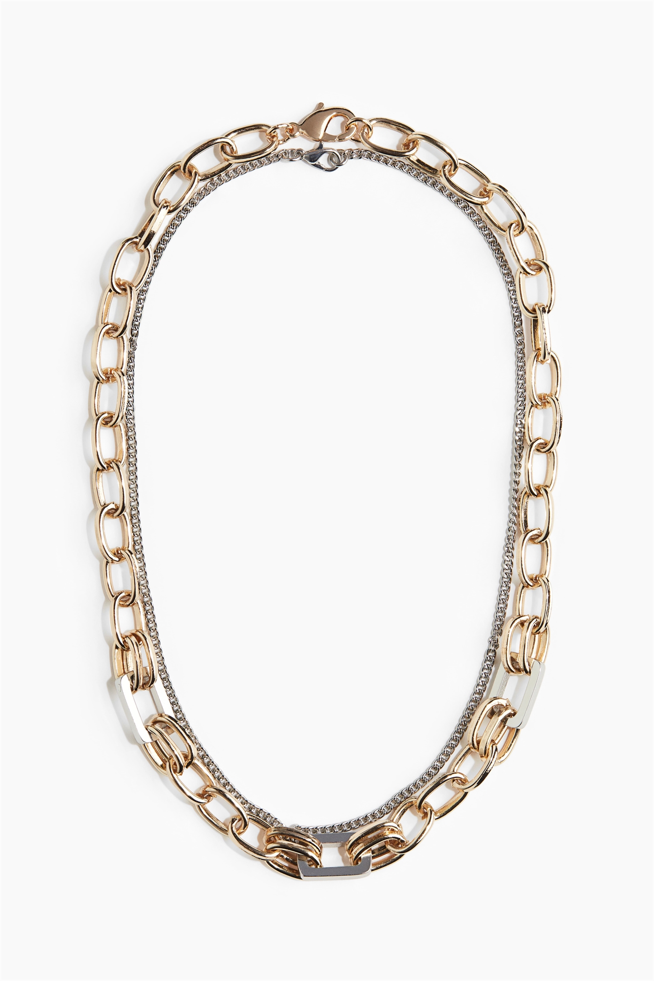 Металлические ожерелья с застежкой-триггером в разных дизайнах, которые можно носить по отдельности или вместе.