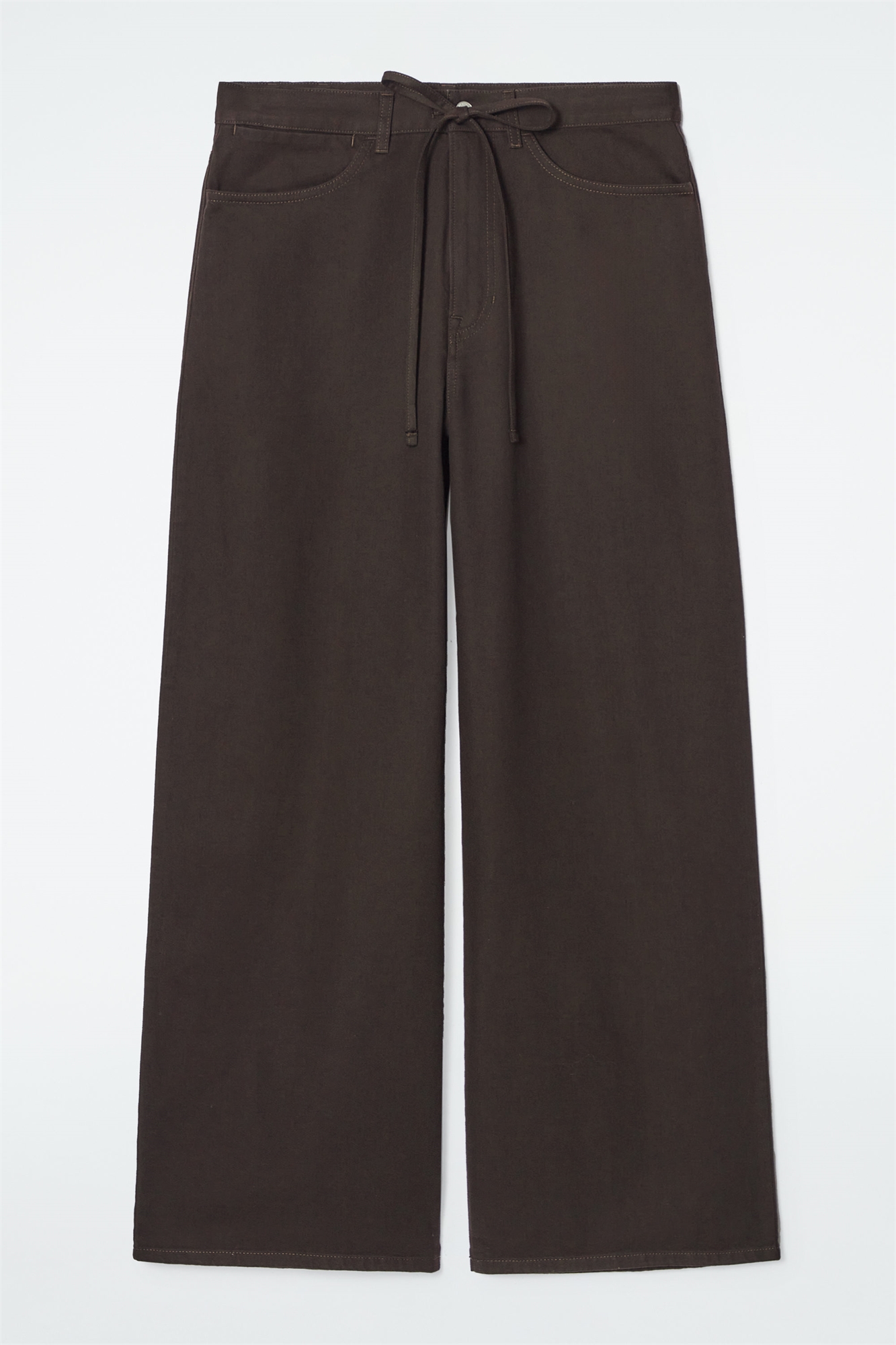 В этом сезоне команда женской моды COS представляет новые интерпретации классики гардероба. Эти повседневные брюки насыщенного цвета эспрессо сшиты из мягкого хлопка, имеют очень широкую штанину и утягивающий пояс. Свободный крой Внешняя ткань и подкладка карманов: 100% хлопок. Детали исключены/Машинная стирка Внутренняя длина штанины в размере ЕС 36 = 76 см/Модель носит размер ЕС 36