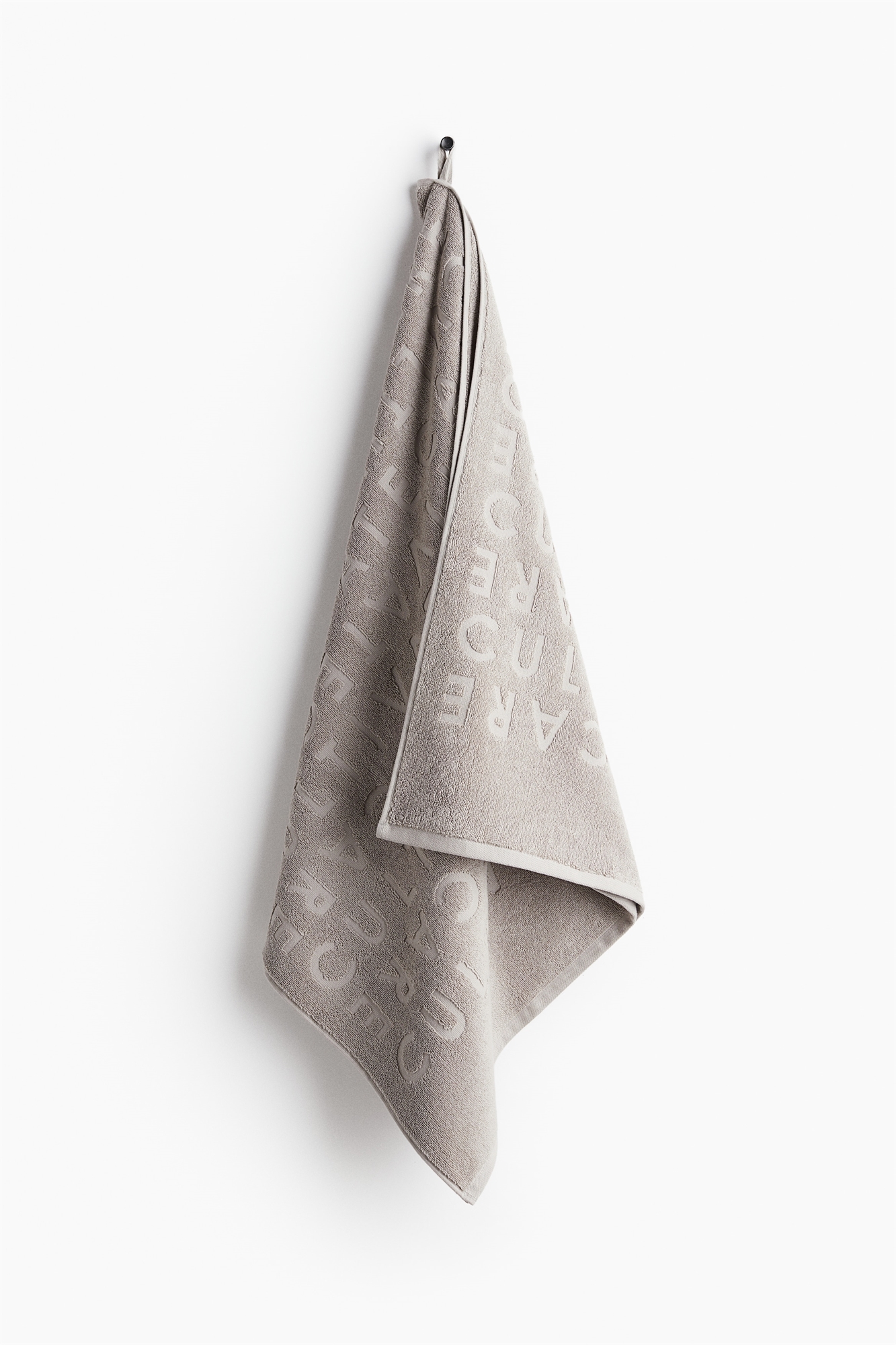 Хлопковое махровое банное полотенце с узором в виде выгоревших пятен и петлей для подвешивания на одной длинной стороне. В серию входят полотенца разных размеров. 540 гсм.