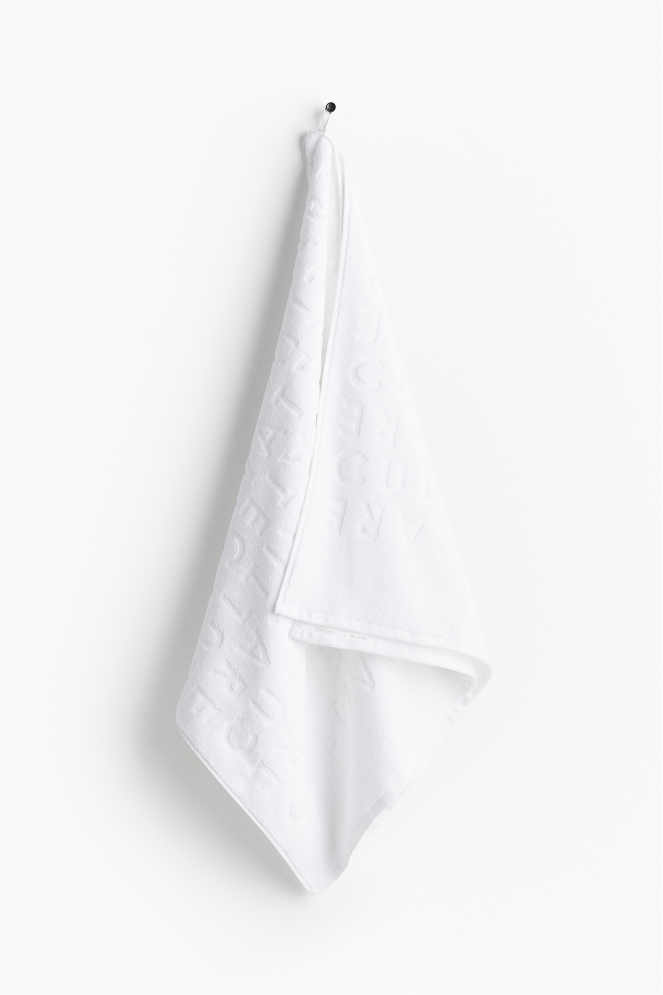 Хлопковое махровое банное полотенце с узором в виде выгоревших пятен и петлей для подвешивания на одной длинной стороне. В серию входят полотенца разных размеров. 540 гсм.