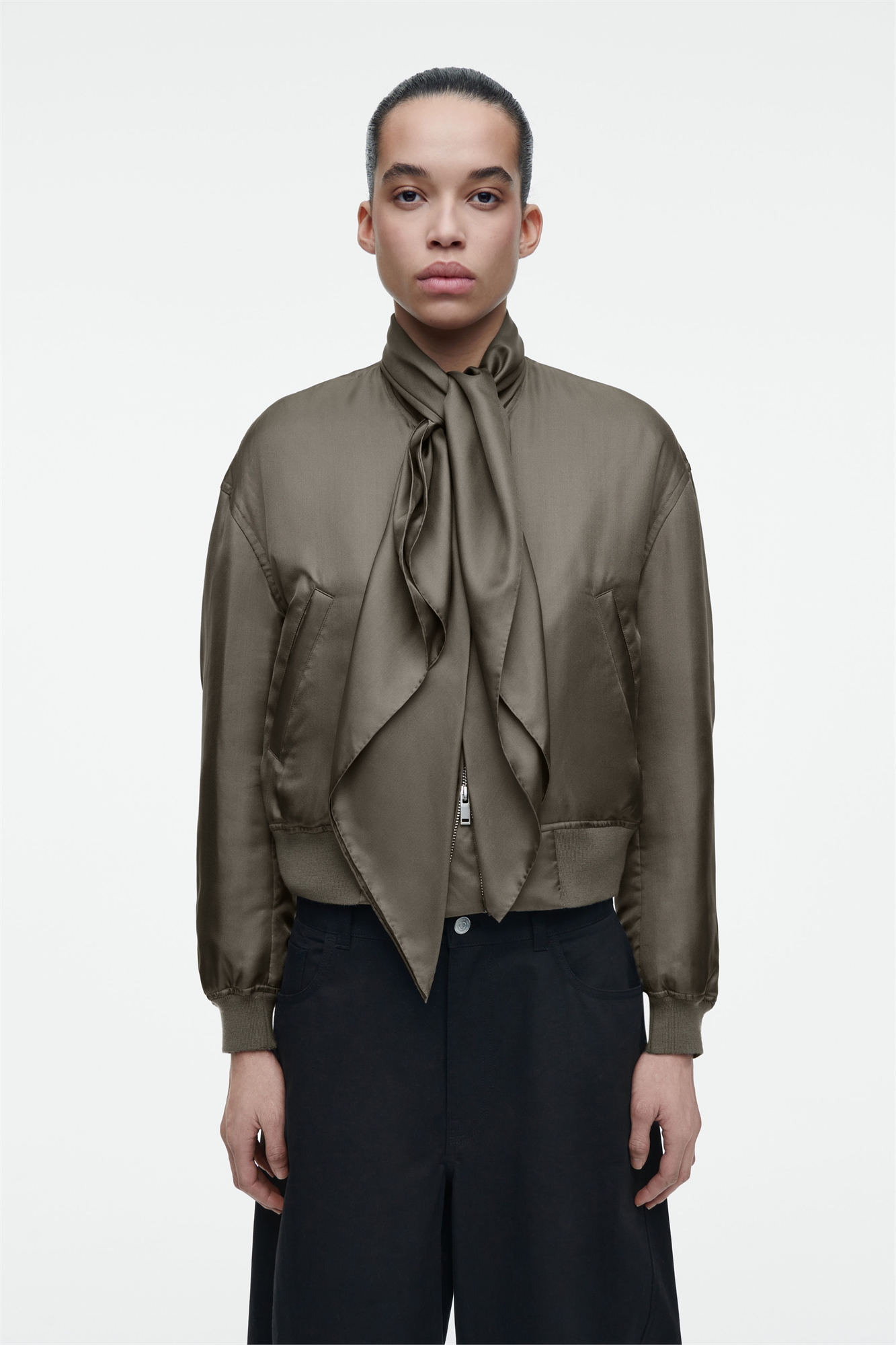Куртка-бомбер из шелка с отделкой шарфом и мягкой подкладкой