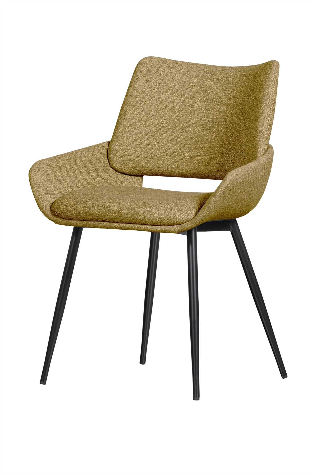 Обеденный стул Parade из коллекции голландского бренда BePureHome имеет тонкое сиденье в форме раковины, обитое тёплой меланжевой тканью. Коническая металлическая ножка придает стулу воздушный вид. Наша Bappi - это ткань грубого плетения с упругим ощущением. Ткань имеет тонкий цветовой нюанс и крупноузорчатый рисунок. Bappi изготовлена из 100% полиэстера. Высота обеденного стула 83 см, ширина 58 см и глубина 55 см. Высота сиденья обеденного стула 49 см, ширина сиденья 43 см, глубина сиденья 43 см. Высота ножек составляет 41 см. Максимальная грузоподъемность обеденного стула - 150 кг, а сам он весит 7 кг.