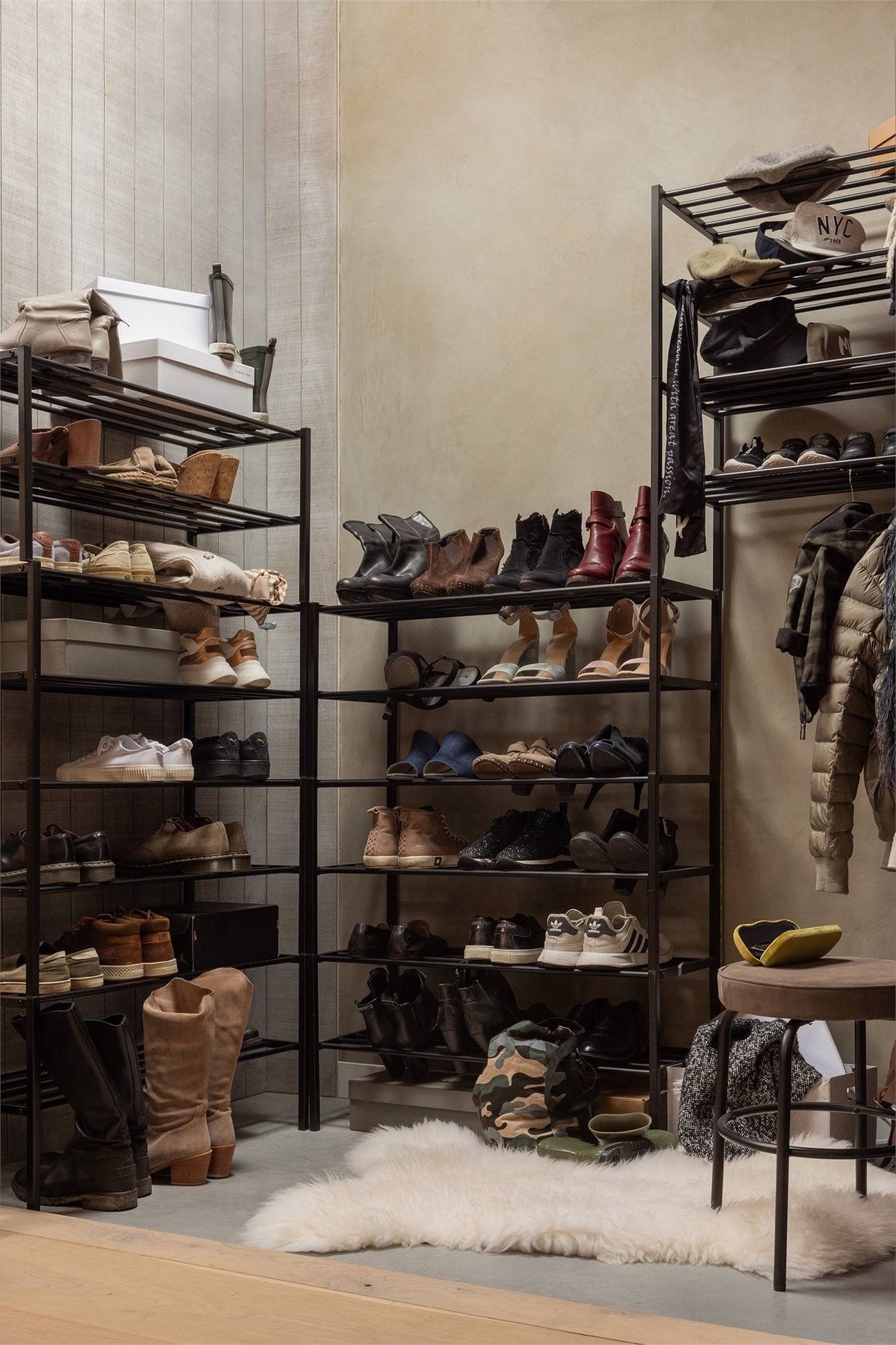 Эта современная и функциональная полка для обуви Ferro - оригинальный дизайн из коллекции голландского бренда WOOOD. Ferro изготовлена из железа и покрыта черным лаком. Удобно, что полка для обуви штабелируется, что позволяет удлинять ее по мере необходимости. Для мебели, высота которой превышает 50 см, мы рекомендуем уделить особое внимание креплению к стене. Металл в наших коллекциях доступен в различных вариантах отделки, например, с порошковым покрытием. Порошковое покрытие придает металлу роскошный вид и защищает его на весь срок службы. Высота этой полки для обуви составляет 80 см, ширина - 85 см, глубина - 35 см, высота полок - 18 см, максимальная нагрузка на каждую полку - 15 кг."