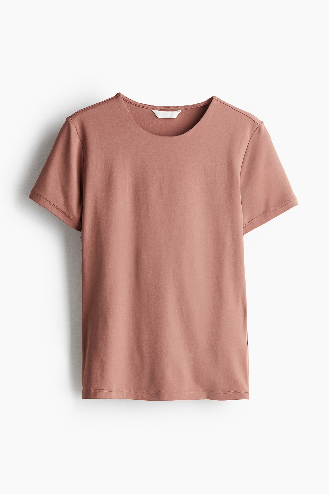 Облегающий топ из эластичного трикотажа с круглым вырезом и короткими рукавами.