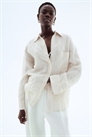 Рубашка оверсайз из воздушного льна с воротником, пуговицами спереди и открытым нагрудным карманом. Иг на спине, мягко опущенные плечи, длинные рукава с регулируемыми пуговицами на манжетах и рукавной планкой с пуговицей. Подол прямого кроя с загнутыми боковыми вентиляционными отверстиями.