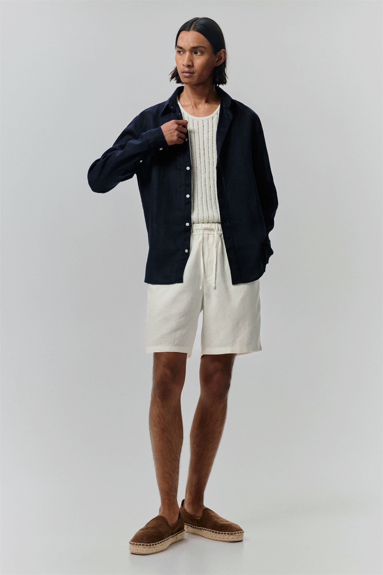 Шорты из воздушного хлопка и вискозы с упругим переплетением, эластичным материалом, завязкой на талии, фальшивой ширинкой, диагональными боковыми карманами и втачным задним карманом. Свободный крой для непринужденного, но не чрезмерного силуэта.