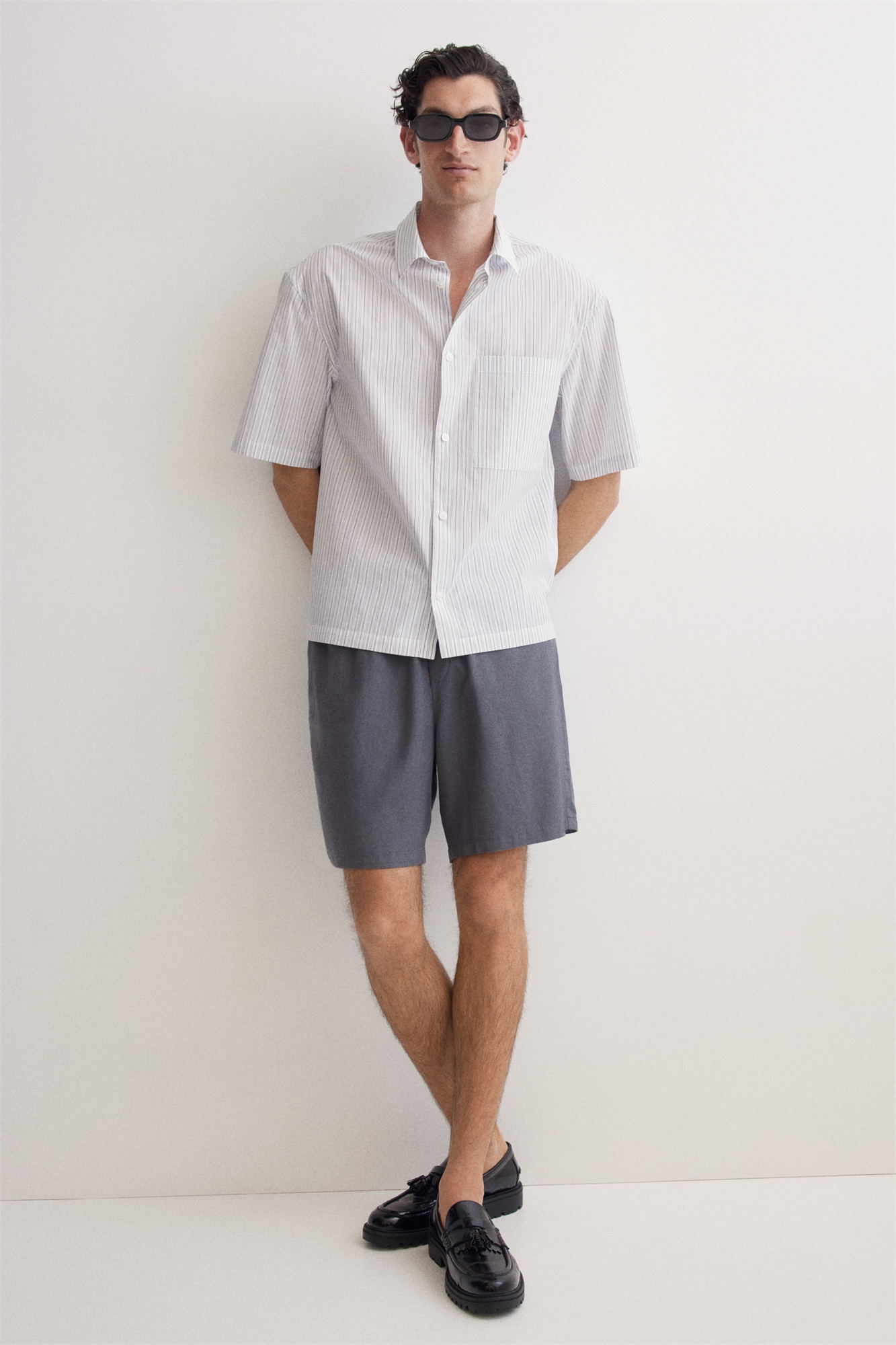 Шорты из воздушного хлопка и вискозы с упругим переплетением, эластичным материалом, завязкой на талии, фальшивой ширинкой, диагональными боковыми карманами и втачным задним карманом. Свободный крой для непринужденного, но не чрезмерного силуэта.