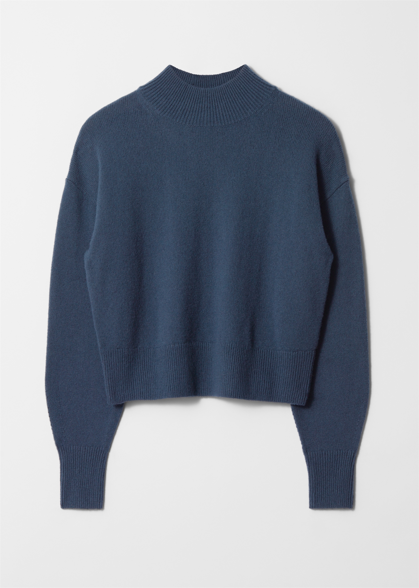 Свитер с мокасиновым вырезом из шерстяного микса. С ребристым вырезом, манжетами и подолом. • Свободный крой • Короткая длина • 54% шерсти RWS TE-00047206 Длина свитера: 51 см / 20" (размер S)