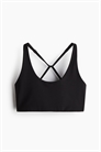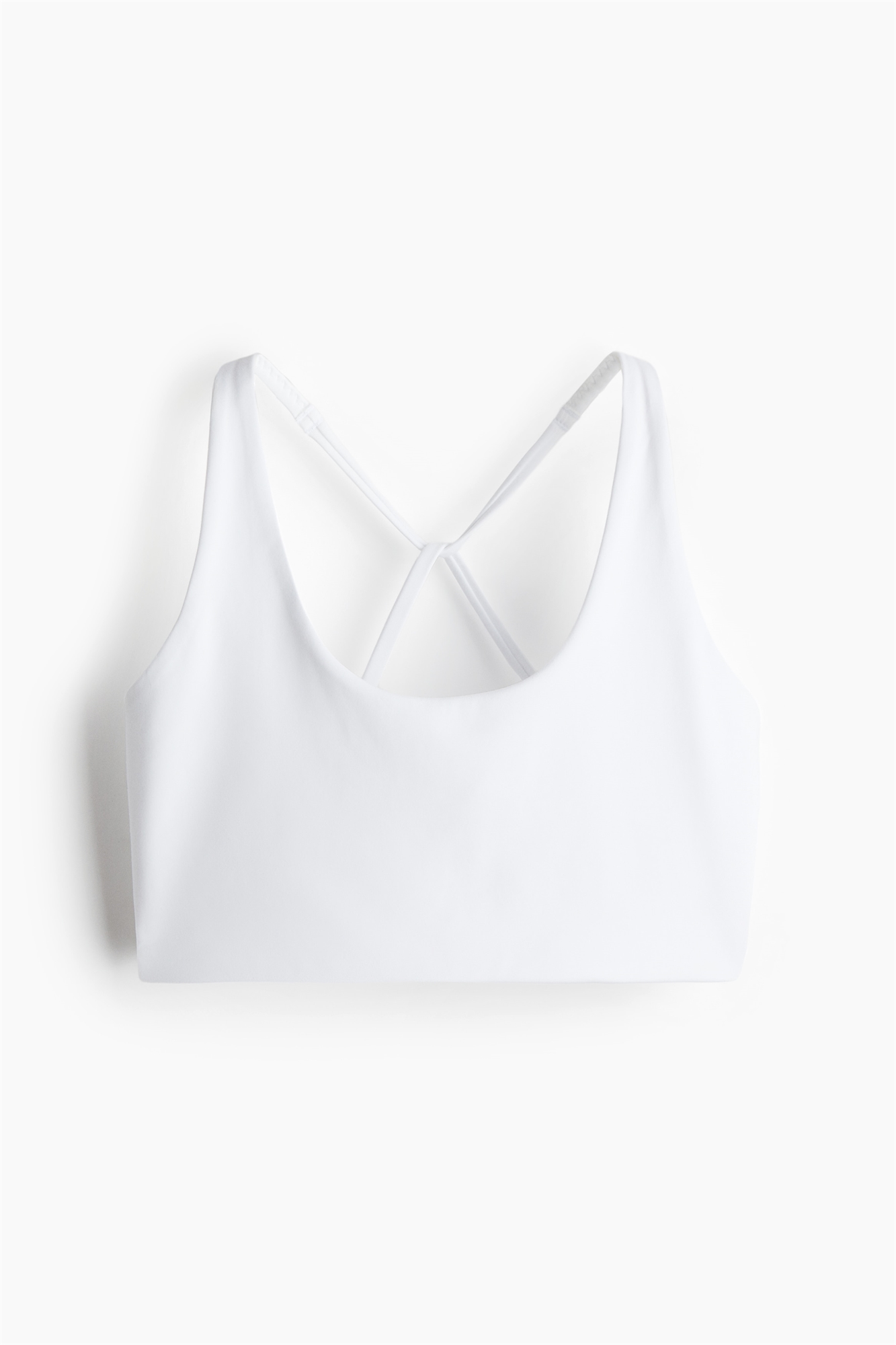 Спортивный бюстгальтер из функциональной ткани SoftMove™, которая обеспечивает максимальную мягкость и комфорт, а также поддержку контуров, и DryMove™, который помогает отводить влагу от кожи. Узкие бретели, перекрещивающиеся сзади, и закрытая эластичная резинка по подолу. Без застежек. Легкая поддержка, подходящая для тренировок низкой интенсивности.