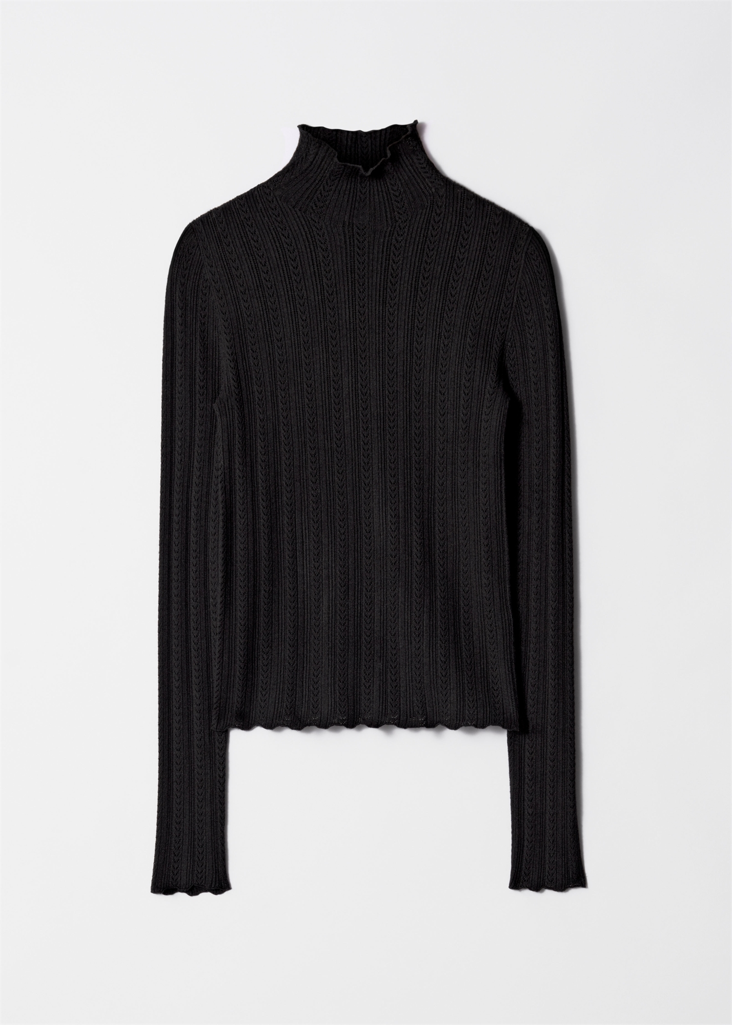 Топ-водолазка с длинными рукавами и отделкой пуантелье. • Зауженный крой Длина топа: 55,5 см / 21,8" (размер S)