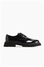 Туфли-дерби с закругленными носками и открытой шнуровкой. Подкладка из хлопкового холста и толстая подошва с рисунком. Каблук 3 см.