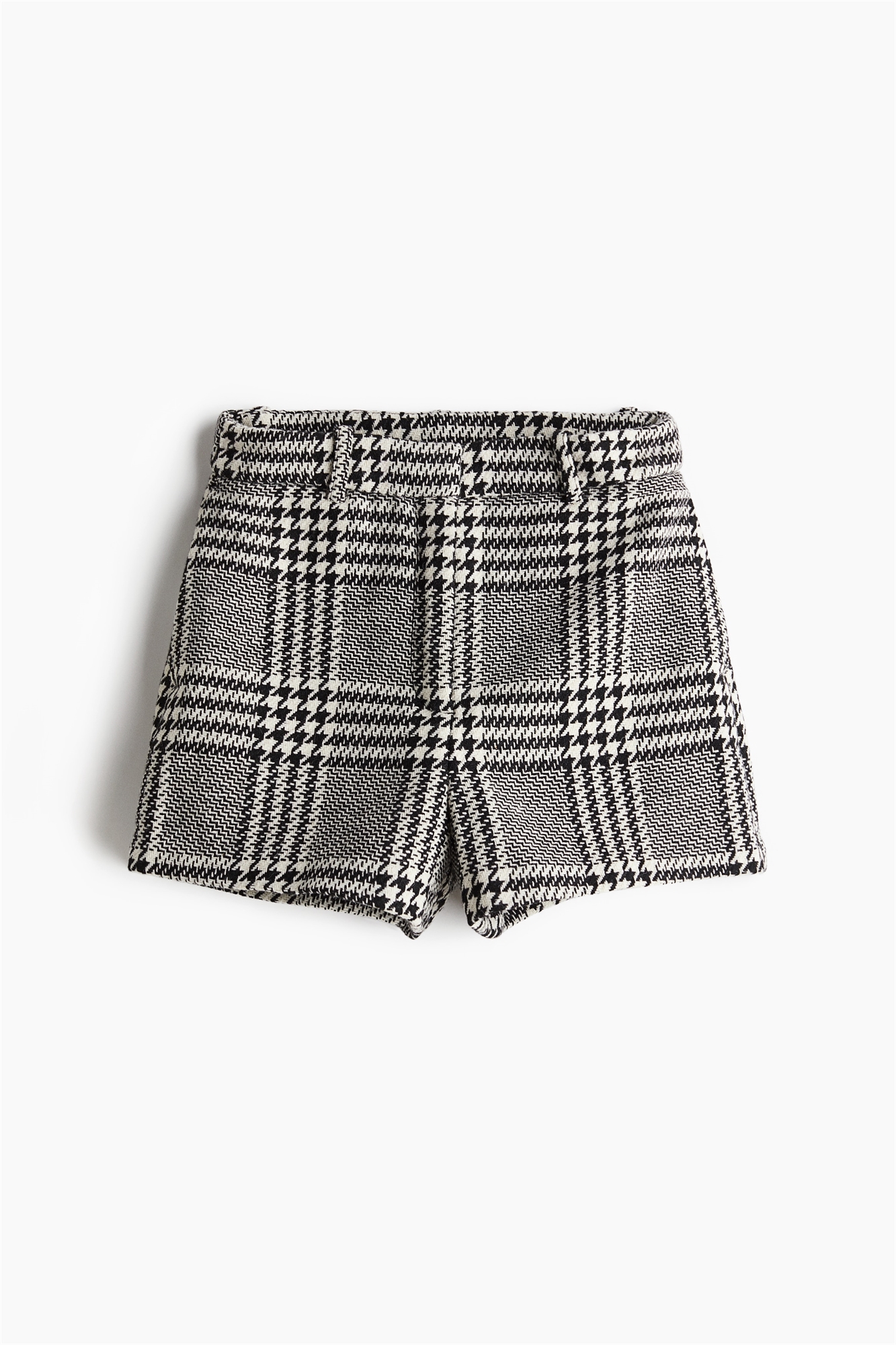 Приталенные шорты из тканого материала с высокой талией и ширинкой на молнии с потайной пуговицей и застежками-крючками. Неприметные боковые карманы и фальшивые карманы сзади.