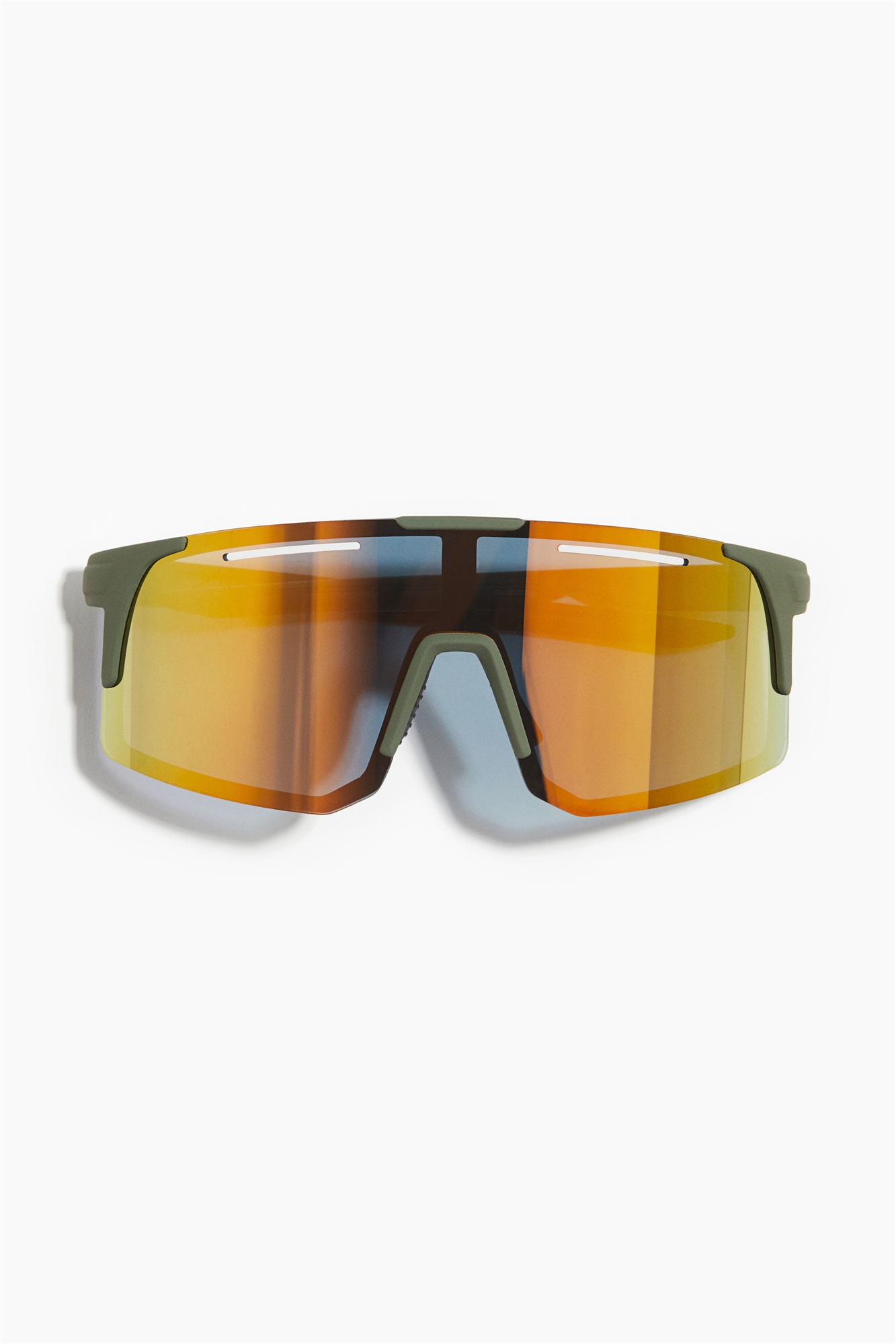 Ударопрочные спортивные солнцезащитные очки с оправой и боковыми дужками из поликарбоната. Тонированные пластиковые линзы с УФ-защитой.