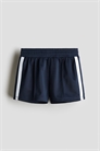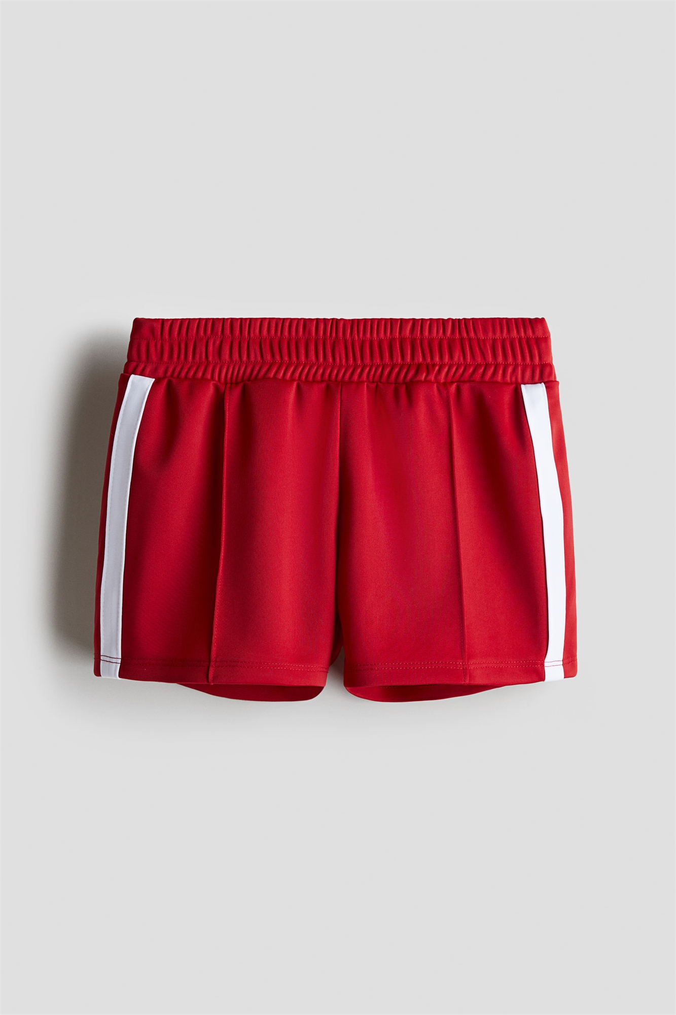 Шорты из плотного трикотажа с мягким блеском, с эластичной талией и контрастными полосками по бокам.