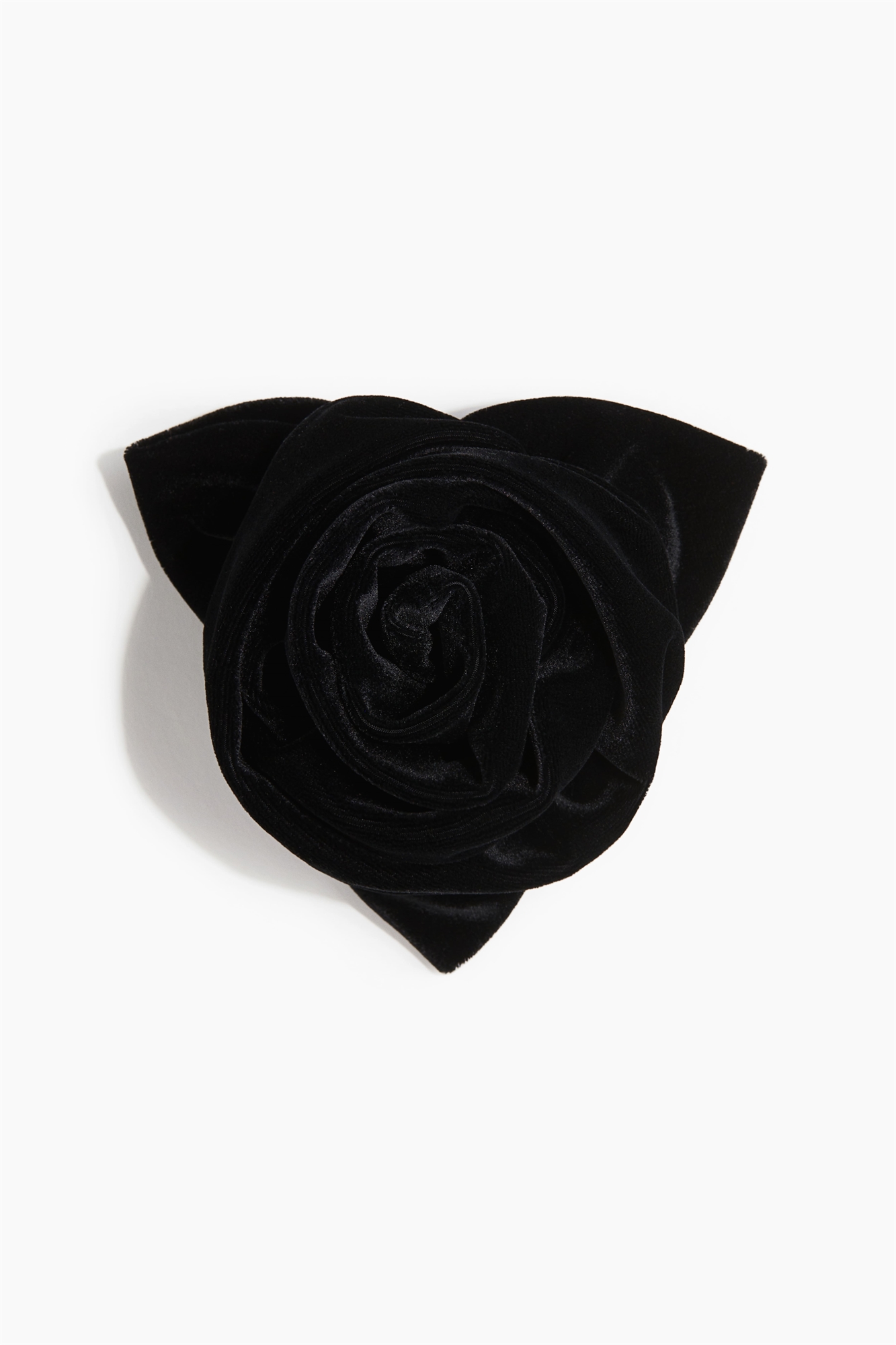 Металлическая заколка для волос, украшенная большим тканевым цветком. Застежка-булавка сзади, чтобы вы могли прикрепить цветок к своему наряду для завершающего штриха.