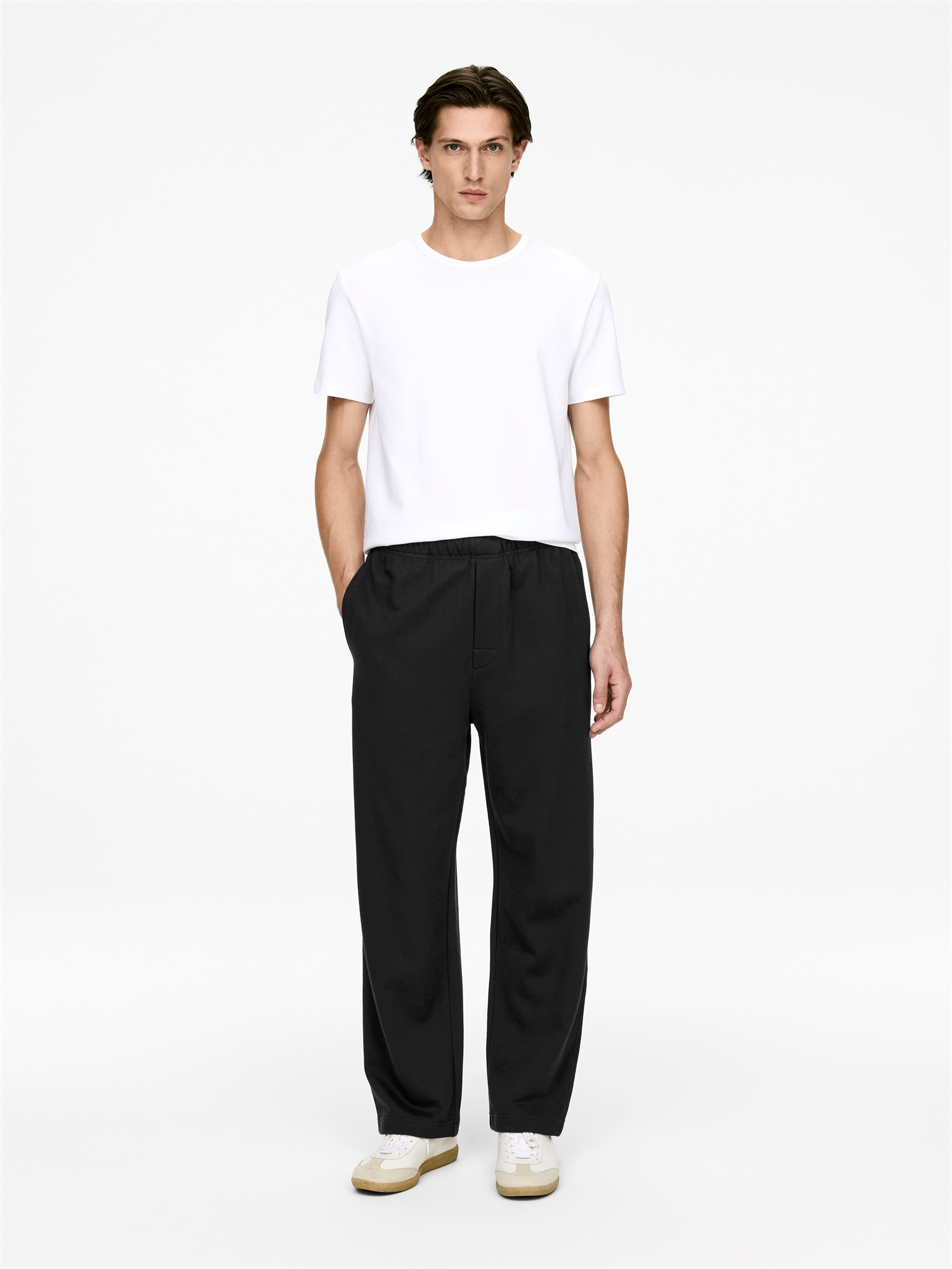 Тренировочные брюки из французской махровой ткани с нечесаной внутренней стороной. Эластичный пояс с утягивающим шнурком, боковые карманы и один задний карман. Покрой обычный.