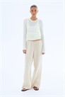 Свободные брюки из воздушного льна с эластичной отделкой и узким шнурком на талии. Небрежные боковые карманы, втачные задние карманы и прямые ноги.
