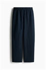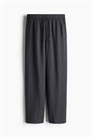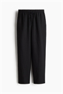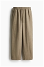 Брюки длиной до щиколотки из воздушной ткани из льняного микса. Высокий эластичный пояс с узким шнурком. Свободный крой, косые боковые карманы и зауженные штанины.