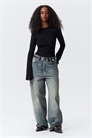 Топ с длинными рукавами, созданный из мягкого и эластичного хлопкового джерси. Он имеет круглый вырез, слегка рифленые рукава и прямые кромки.