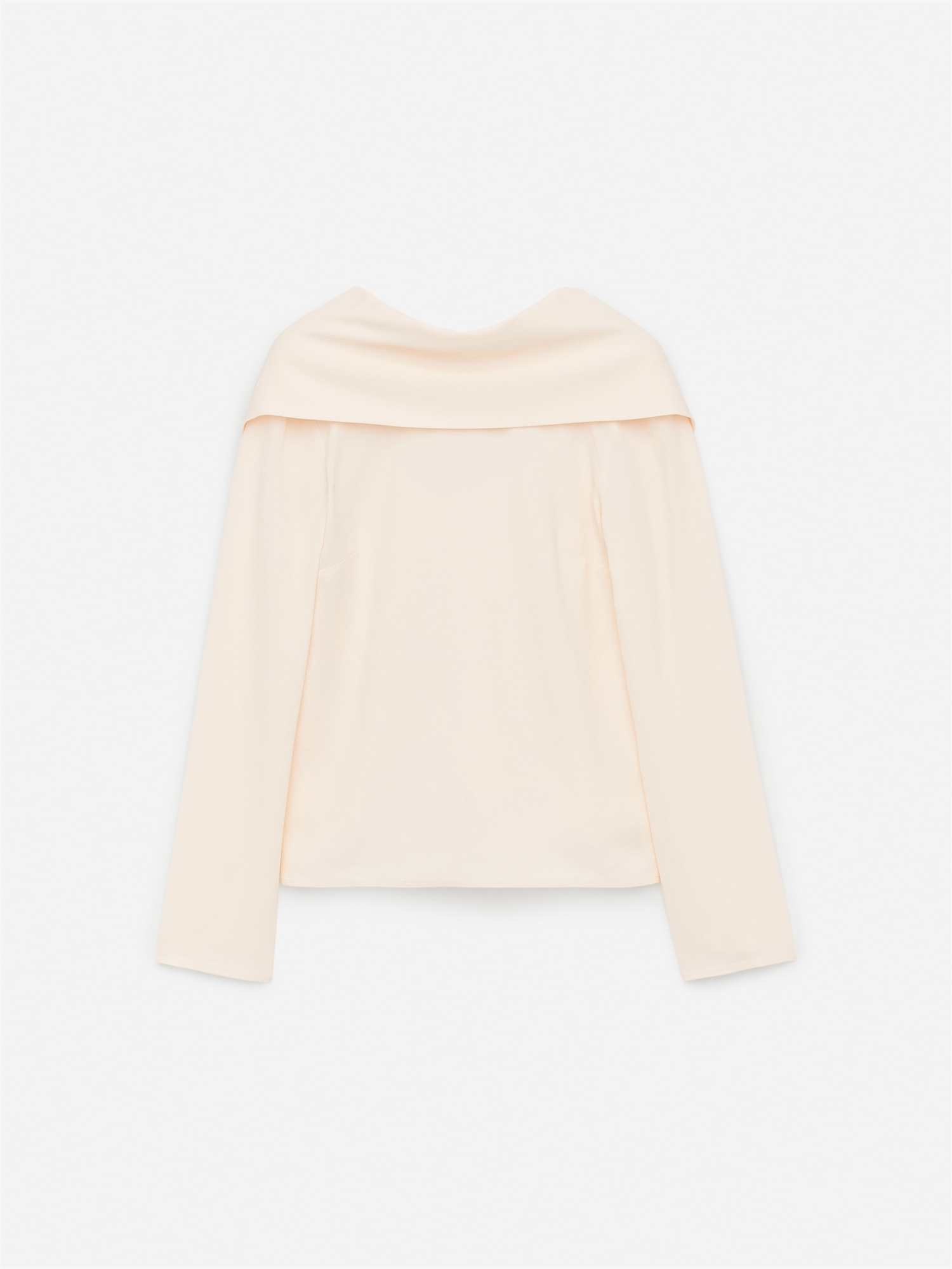 Топ с длинными рукавами из вискозной ткани с драпированным вырезом и водопадной драпировкой на спине. Обычный крой.