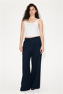 Свободные брюки свободного покроя из тканого материала из смеси льна с высокой талией со скрытой резинкой и ширинкой на молнии с пуговицей. Складки спереди и вытачки сзади придают силуэту привлекательность. Диагональные боковые карманы, втачные карманы сзади и широкие ноги со складками спереди и сзади.