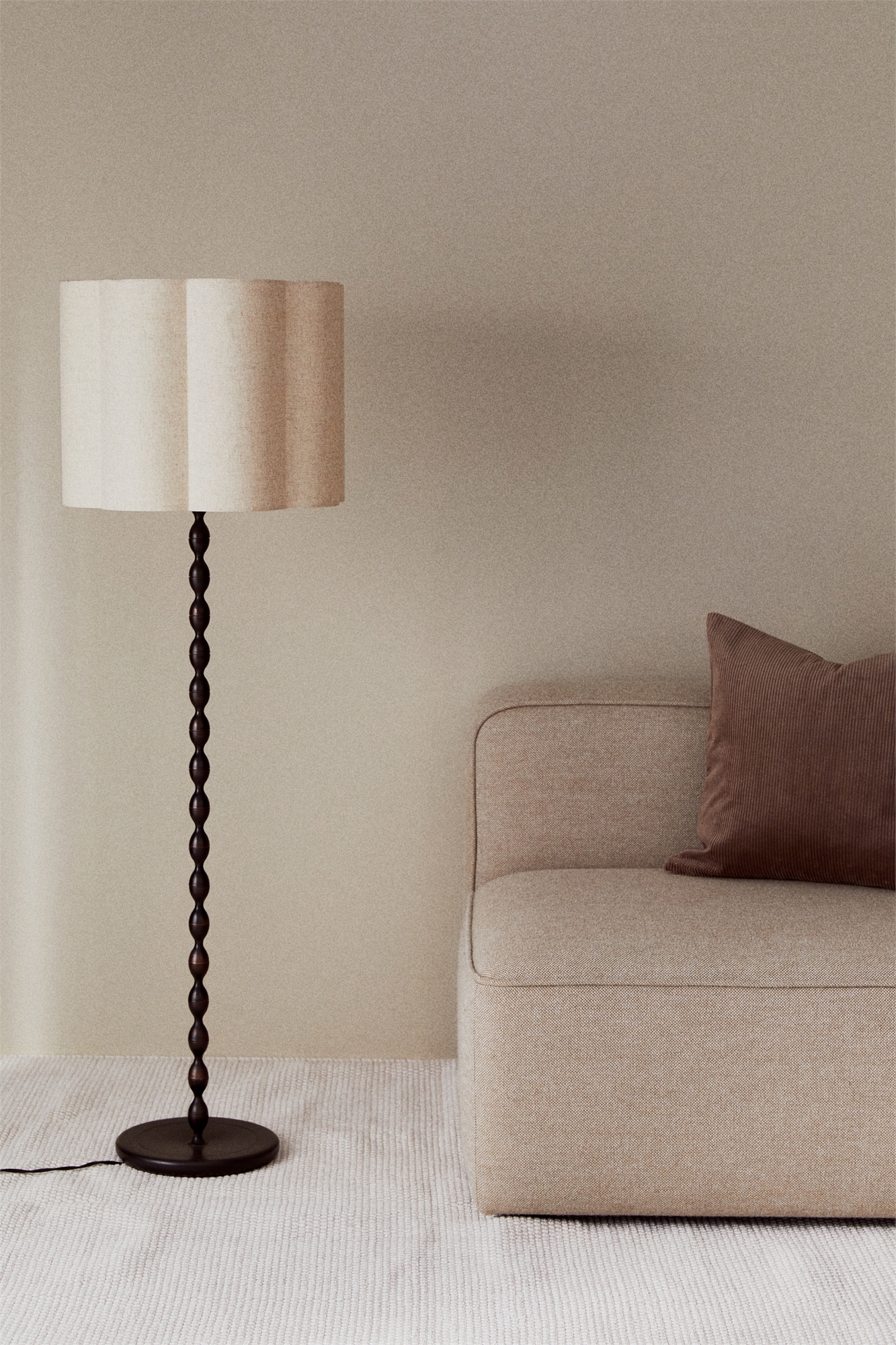 Рифленый абажур из хлопкового холста. Изящный, элегантный дизайн, прекрасно рассеивающий свет. Подходит для подвесных светильников, торшеров и настольных ламп. Высота 32 см. Диаметр 42 см.