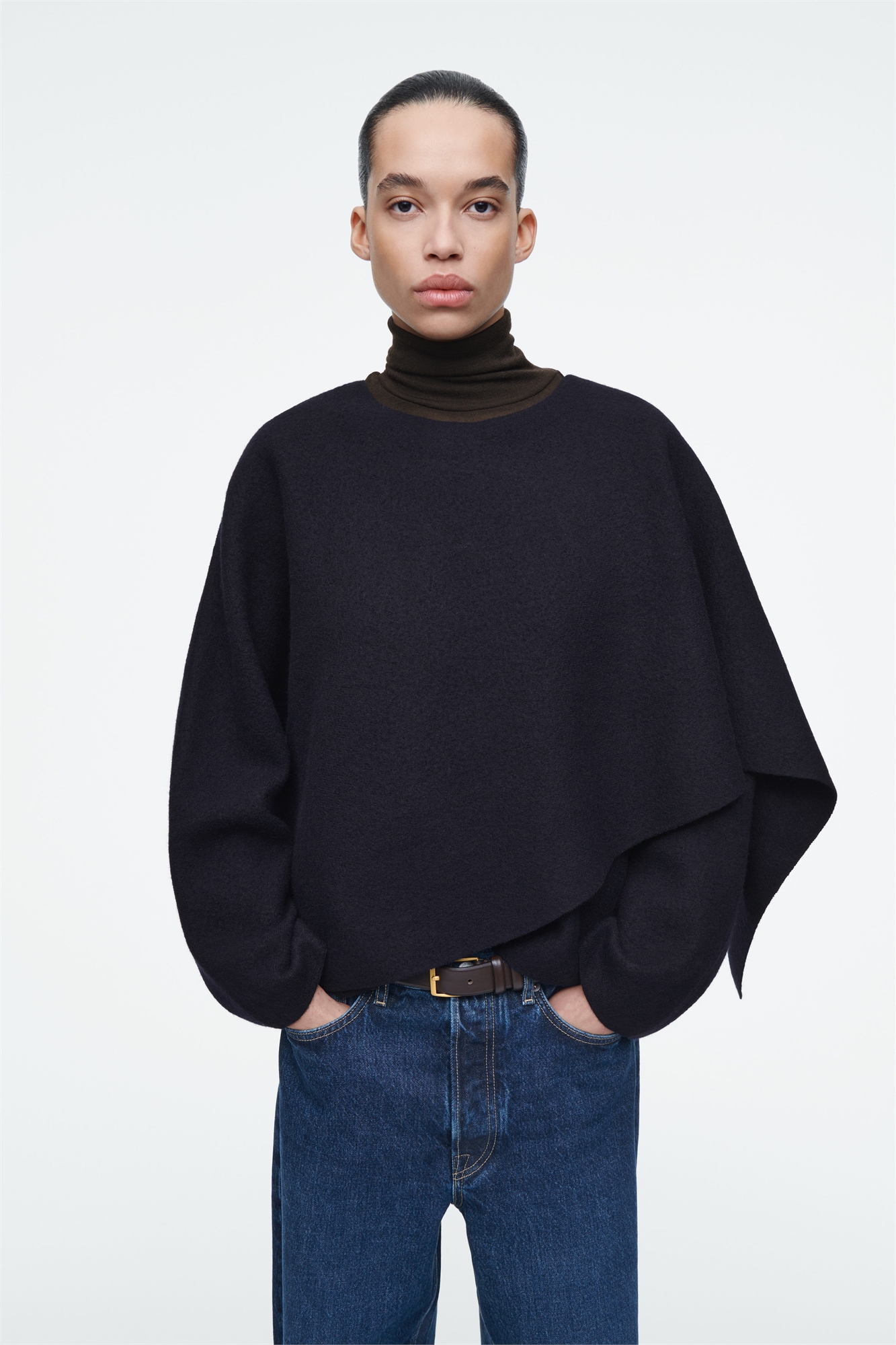 Продуманная многослойность - краеугольный камень осенне-зимнего стиля. Эта модель сочетает в себе силуэты джемпера и накидки - обратите внимание на длинные рукава и шарф, перекинутый через плечо. Он изготовлен из чистой шерсти RWS насыщенного полуночно-темного цвета. Регулярный крой Застежка на пуговицы В составе этого изделия содержится шерстяное волокно Responsible Wool Standard TE-00047206 (RWS), произведенное на фермах, сертифицированных в соответствии с требованиями к благополучию животных и управлению земельными ресурсами Шелл: 100% шерсть RWS. Без учета отделки / Сухая чистка Длина по спинке для размера XS/S составляет 60 см / Модель носит размер XS/S