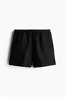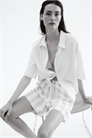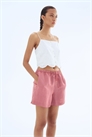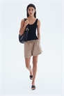 Шорты свободного кроя из льна и вискозы с эластичным поясом на завязках, неброскими боковыми карманами и небольшим разрезом на подоле.
