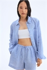 Шорты свободного покроя из воздушного льна с высокой эластичной талией и узким шнурком. Незаметные боковые карманы и небольшой разрез на подоле.