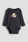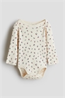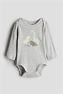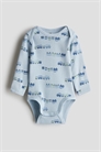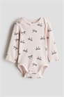 Боди с длинными рукавами из мягкого хлопкового джерси с набивным рисунком, горловина конвертом для плавного одевания и застежки внизу для удобства переодевания.