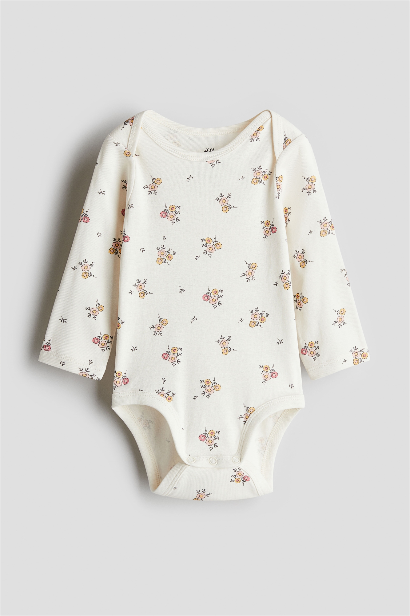 Боди с длинными рукавами из мягкого хлопкового джерси с набивным рисунком, горловина конвертом для плавного одевания и застежки внизу для удобства переодевания.