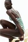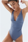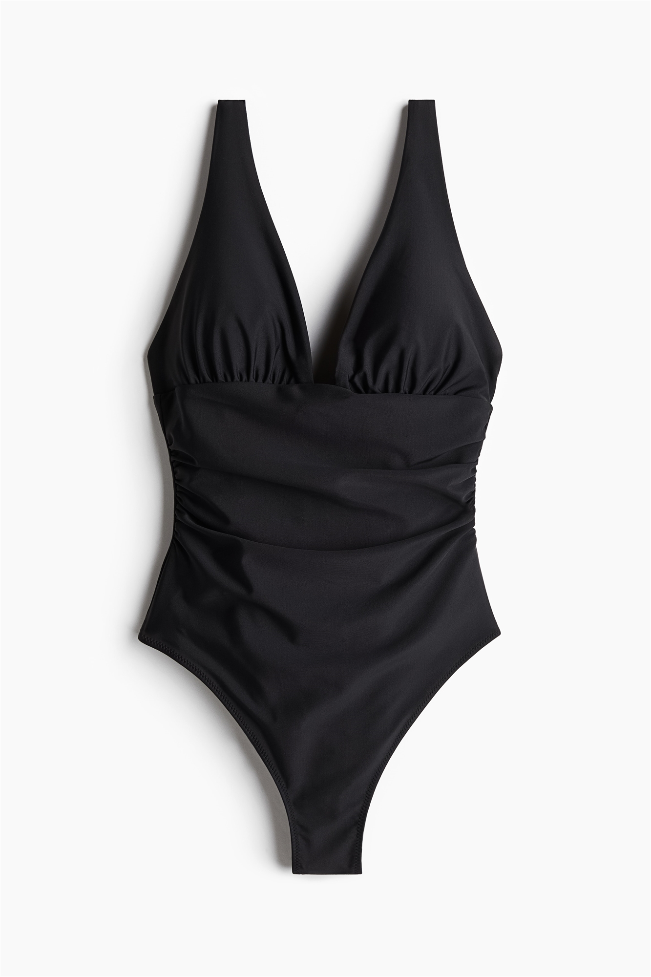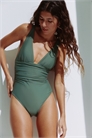 Полностью на подкладке, купальник с V-образным вырезом горловины, плотно облегающий талию и придающий ей легкую форму. Регулируемые бретели и чашечки со съемными вкладышами, придающими форму бюсту и обеспечивающими хорошую поддержку. Сборчатые боковые швы для создания привлекательного силуэта и средняя степень защиты сзади.