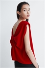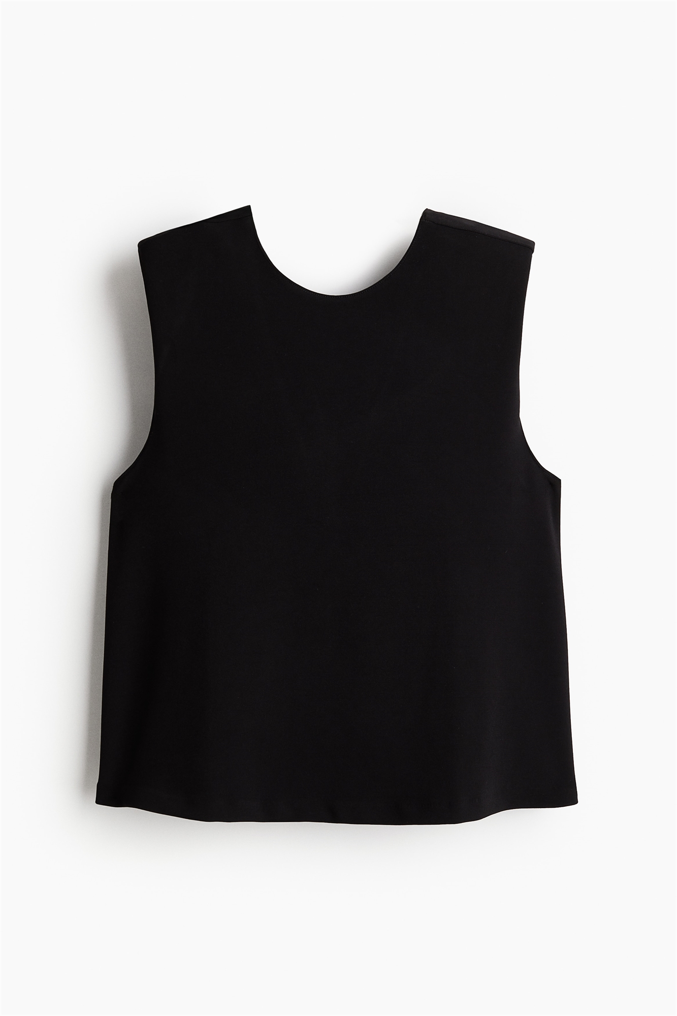 Свободный жилет-топ из плотного джерси с круглым вырезом спереди и V-образным разрезом сзади с деталью в виде узла, создающей эффект драпировки.