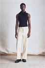 Брюки из воздушного хлопка и льняного полотна с ширинкой на молнии и удлиненным поясом с потайной застежкой на крючок и пуговицу. Боковые карманы, втачные задние карманы и ножки со складками. Свободный крой для непринужденного, но не слишком большого силуэта. Смесь хлопка и льна сочетает в себе мягкость хлопка и прочность льна, создавая красивую, текстурированную ткань, которая хорошо пропускает воздух и прекрасно драпируется.
