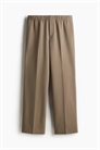 Брюки из мягкой ткани с эластичной отделкой, скрытым поясом, фальшивой ширинкой, боковыми и задними карманами. Ноги со складками. Регулярный крой для комфортной носки и классического силуэта.