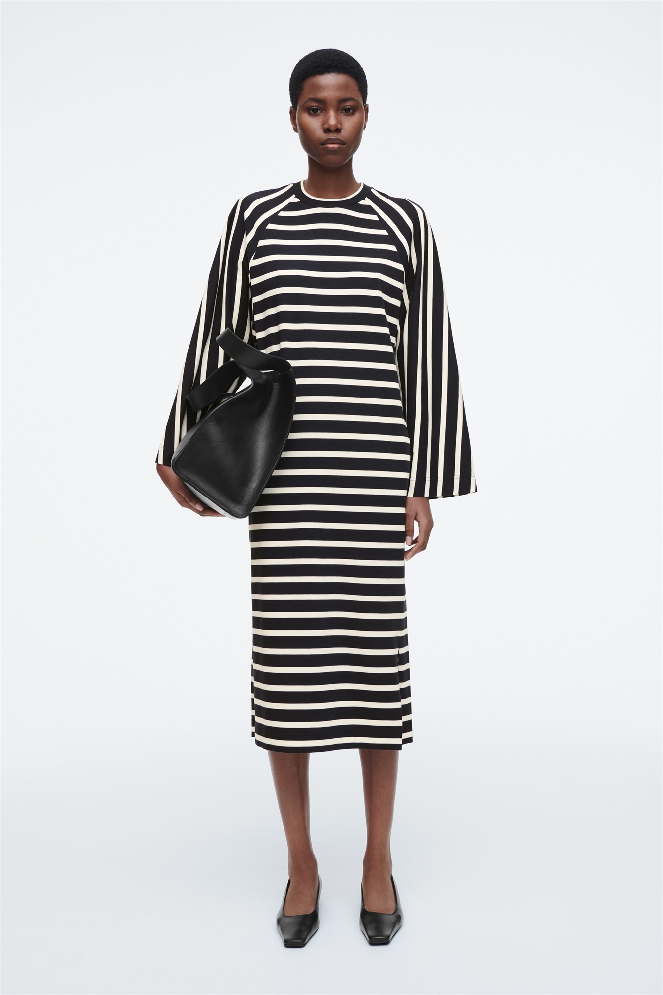 Это легкое платье-столбик можно одевать как сверху, так и снизу, в зависимости от аксессуаров. Изготовленное из мягкого хлопка-джерси, оно имеет ребристую горловину, незаметные боковые карманы и длинные рукава "летучая мышь" для придания объема. Носите его с классическими балетками. Регулярная посадка Длина миди, разрез на подоле Ткань: 100% хлопок. Без учета отделки / Машинная стирка Длина по спинке для размера S составляет 112 см / Модель носит размер S