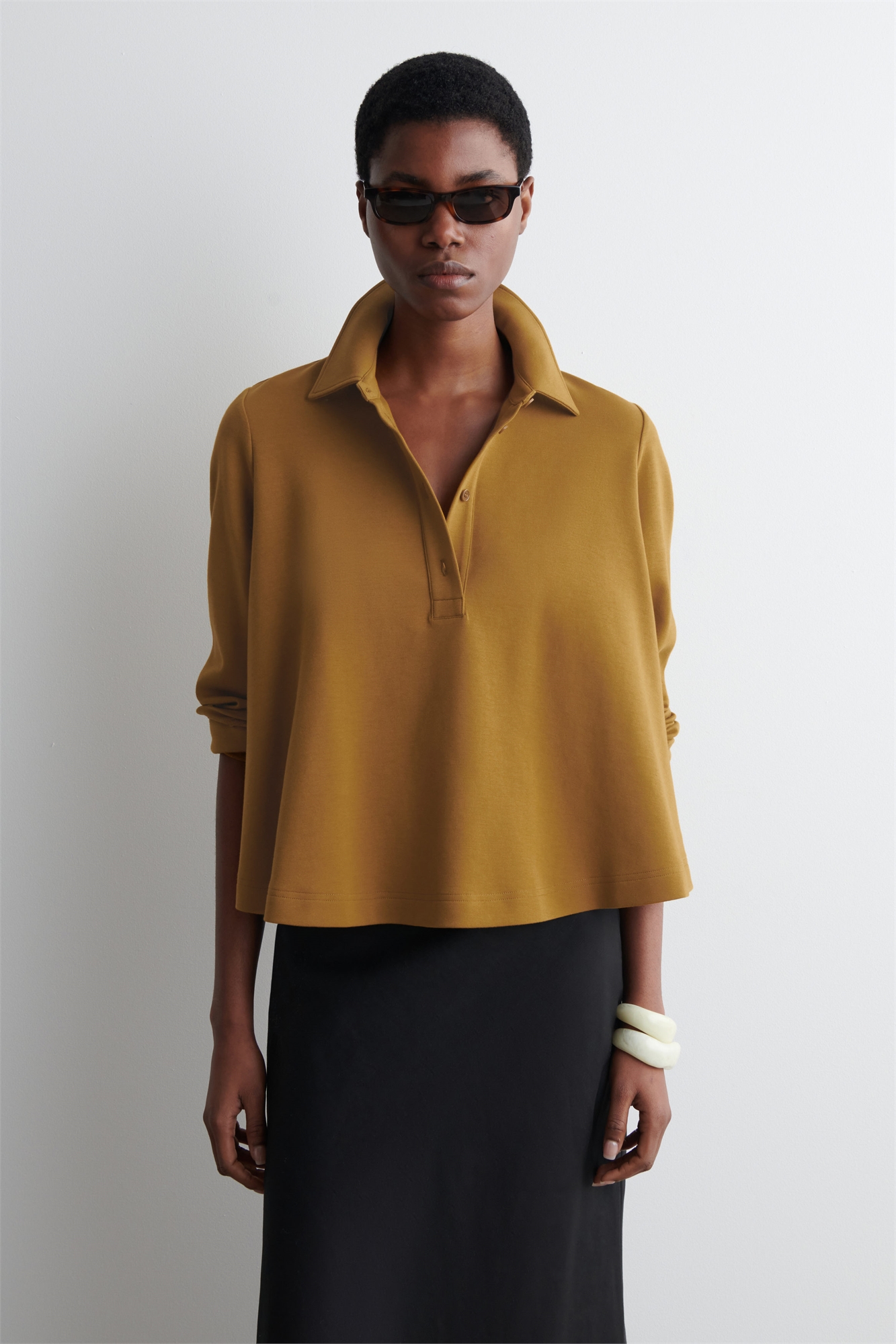 Расклешенная футболка-поло из хлопкового джерси