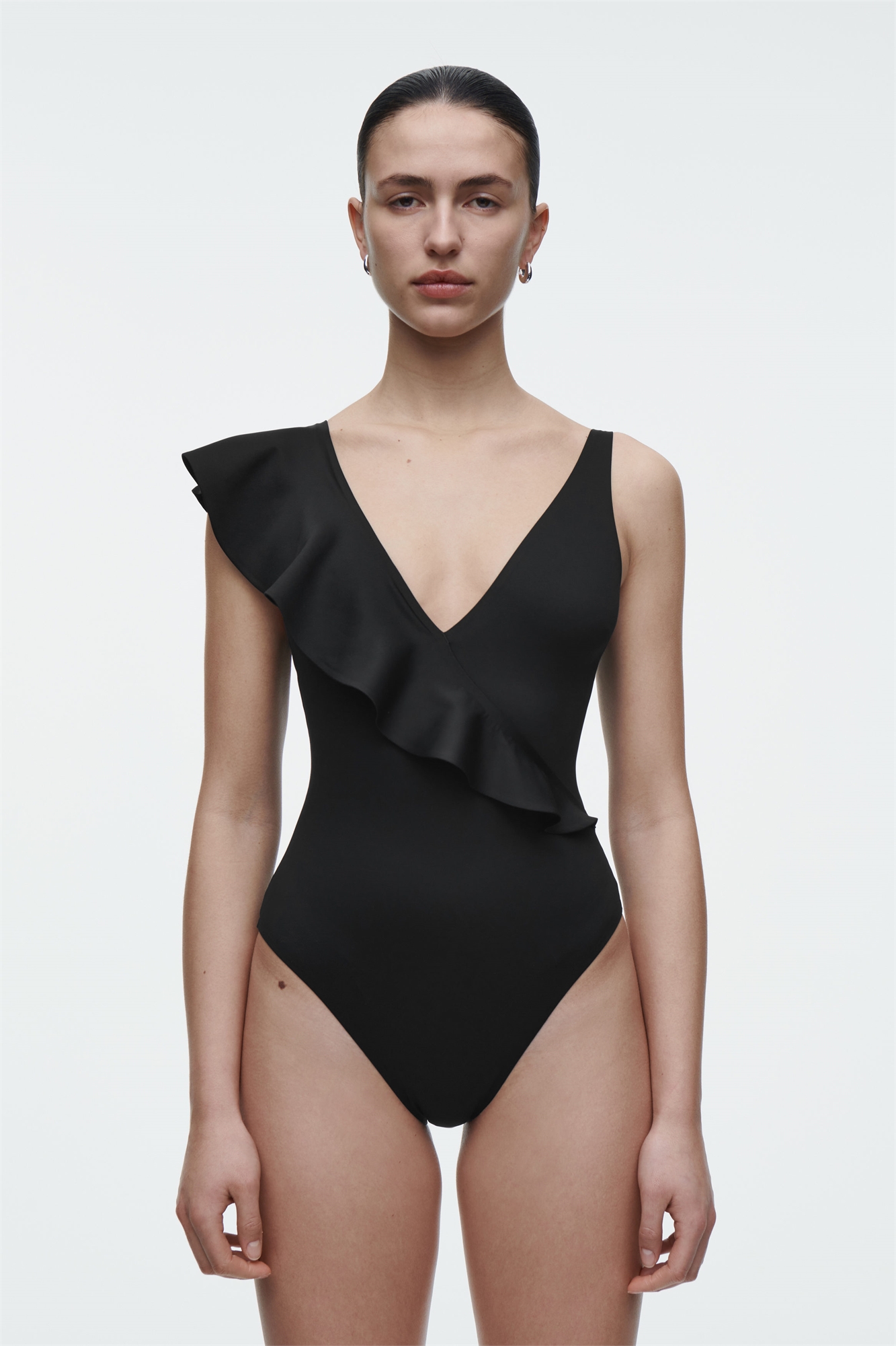 Этот купальник, украшенный асимметричной оборкой, выполнен в классическом черном цвете, что делает его неподвластным времени. Чашечки с высокой посадкой погружаются в глубокий V-образный вырез, а аккуратно расположенные вытачки обеспечивают утонченную форму. Регулируемые бретели Переработанный нейлон снижает потребность в ограниченных природных ресурсах и сокращает выбросы парниковых газов Ткань: 58% переработанного полиамида (переработанный нейлон), 42% эластана. Подкладка: 85% переработанного полиамида, 15% эластана. Без учета отделки / Ручная стирка