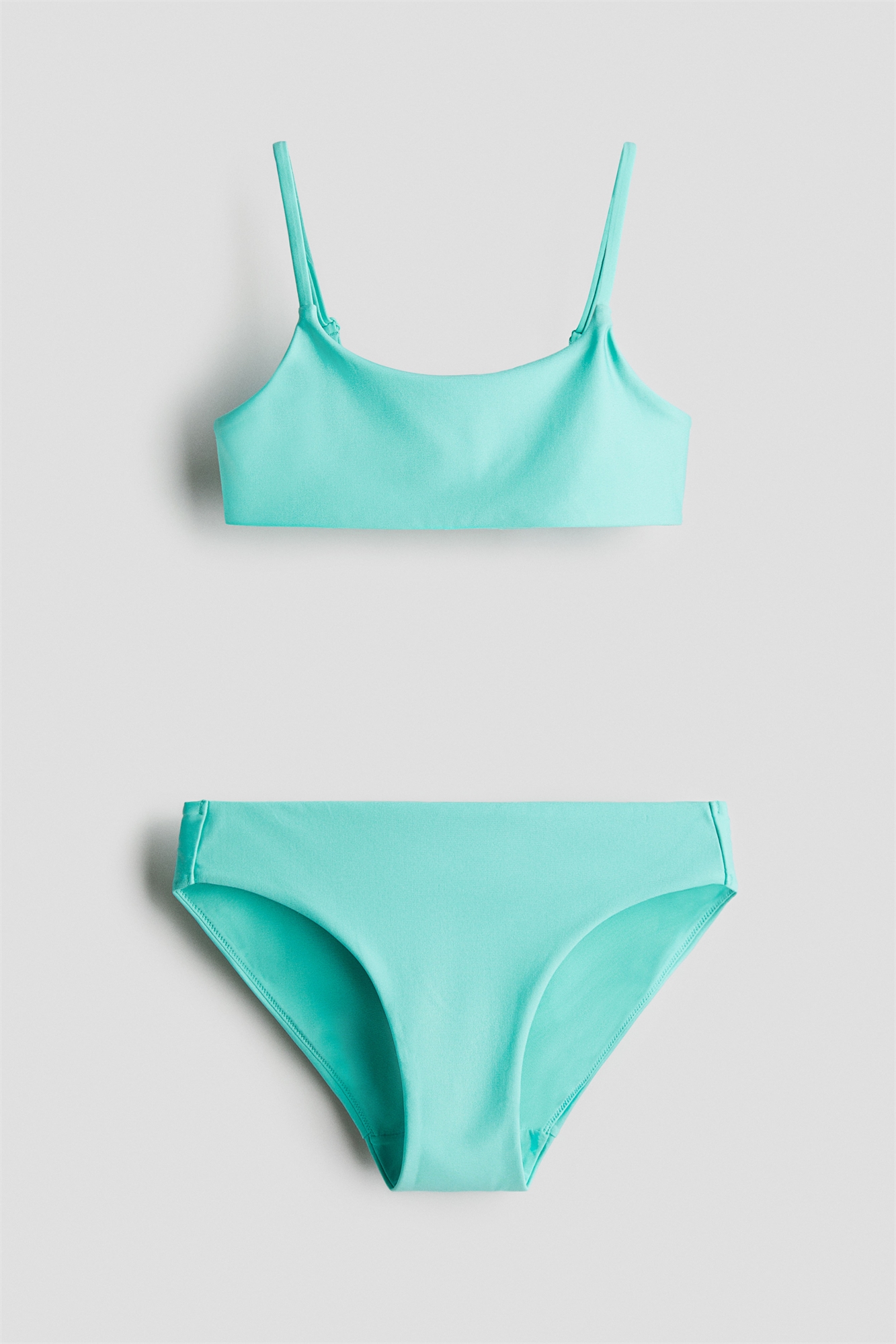 Полностью закрытое бикини с верхней частью и подходящими нижними частями. Топ с узкими регулируемыми бретелями.