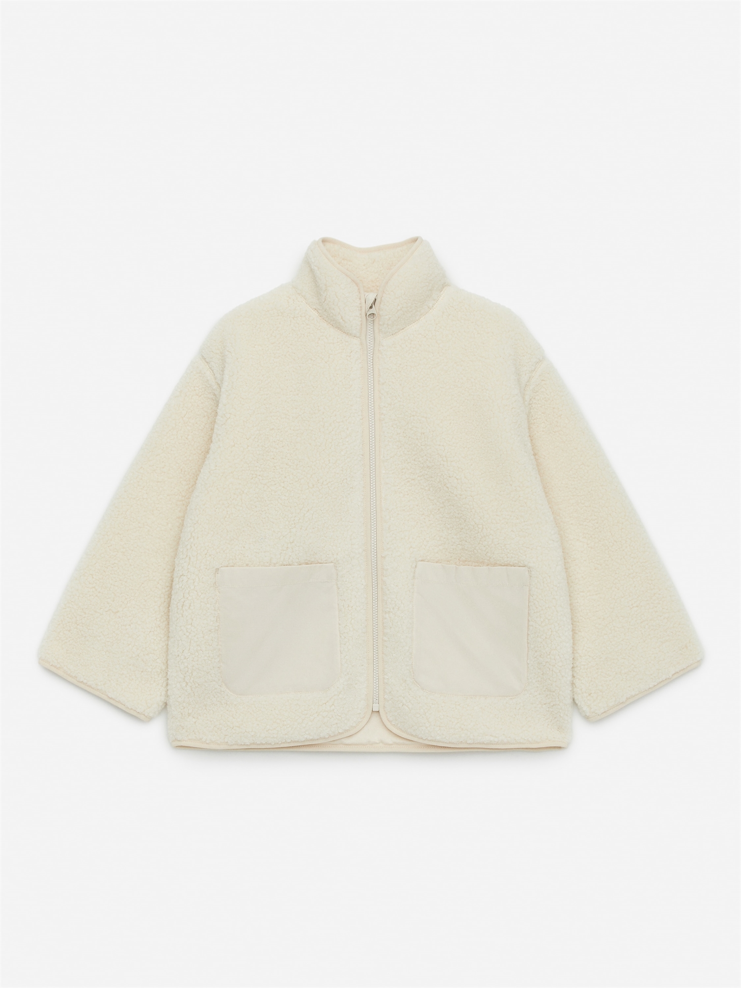 Ворсовая куртка с опущенными плечами, удобным воротником-стойкой и накладными карманами из нейлона. Обычный крой.
