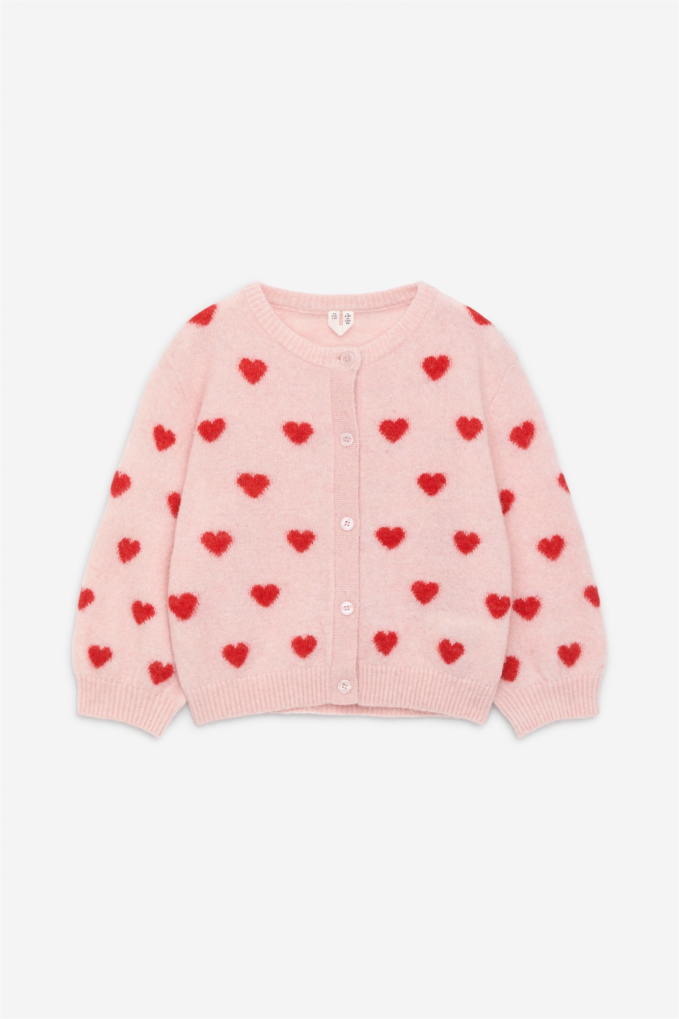 Уютный вязаный кардиган из теплой шерстяной смеси с добавлением альпаки для пушистости. Круглый вырез с застежкой на пуговицы спереди. Отделка ребристой вязкой.