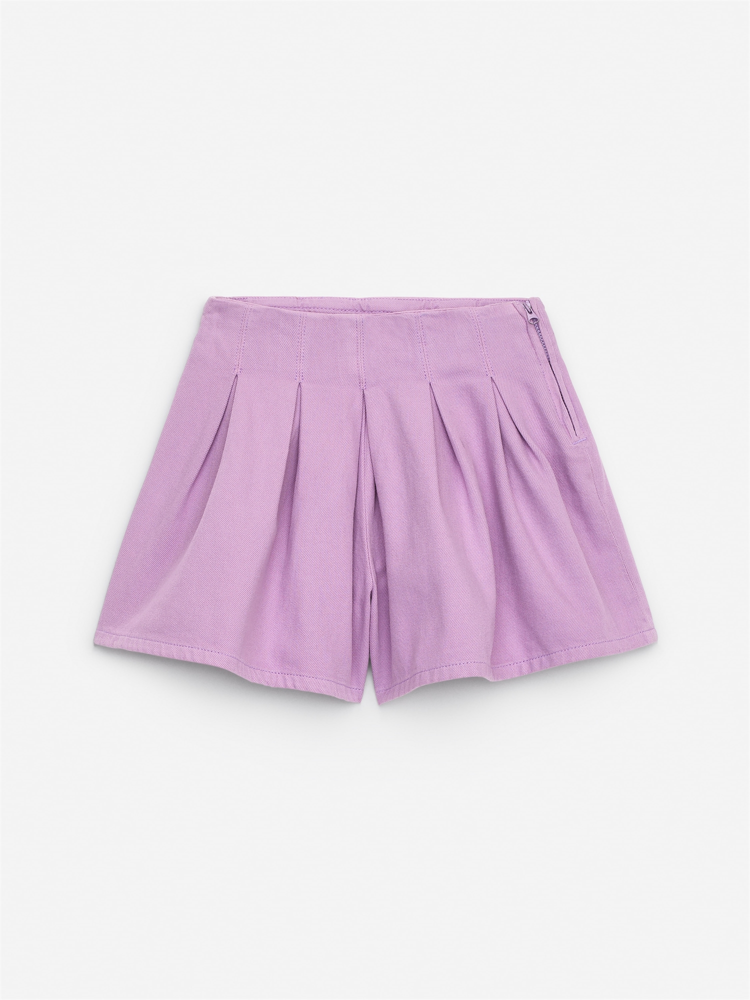 Хлопковые юбки-шорты с регулируемой резинкой на талии, потайной застежкой-молнией в боковом шве и плиссировкой.