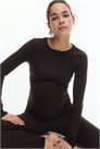 Комплект из топа и леггинсов из ребристого трикотажа с защитными швами flatlock. Облегающий топ с круглым вырезом и длинными рукавами. Леггинсы с широкой панелью из джерси на талии для лучшей посадки на животе.