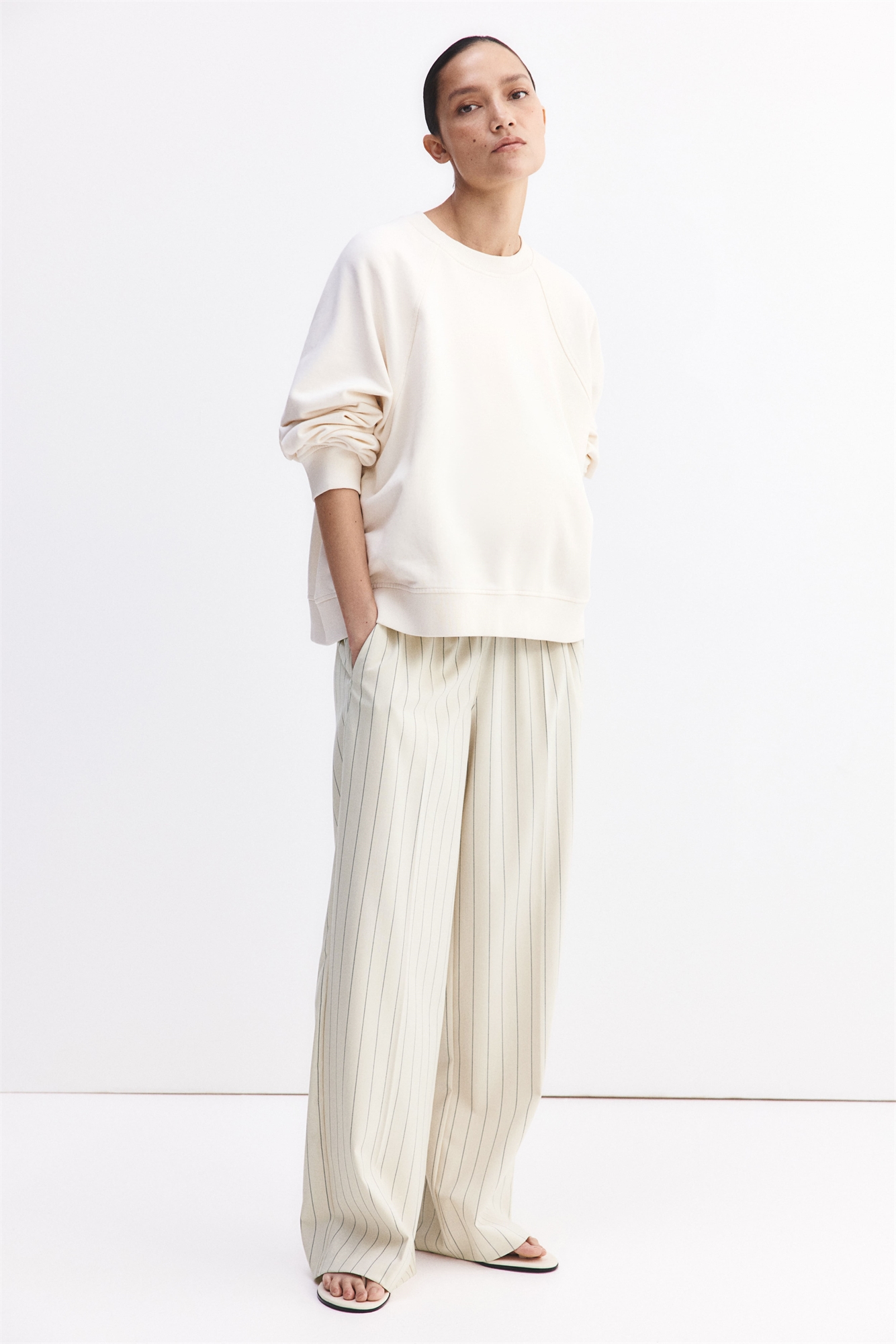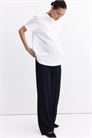 Свободные брюки из тканого материала с заниженной эластичной талией для комфортной посадки во время и после беременности. Диагональные боковые карманы и широкие штанины со складками спереди и сзади.