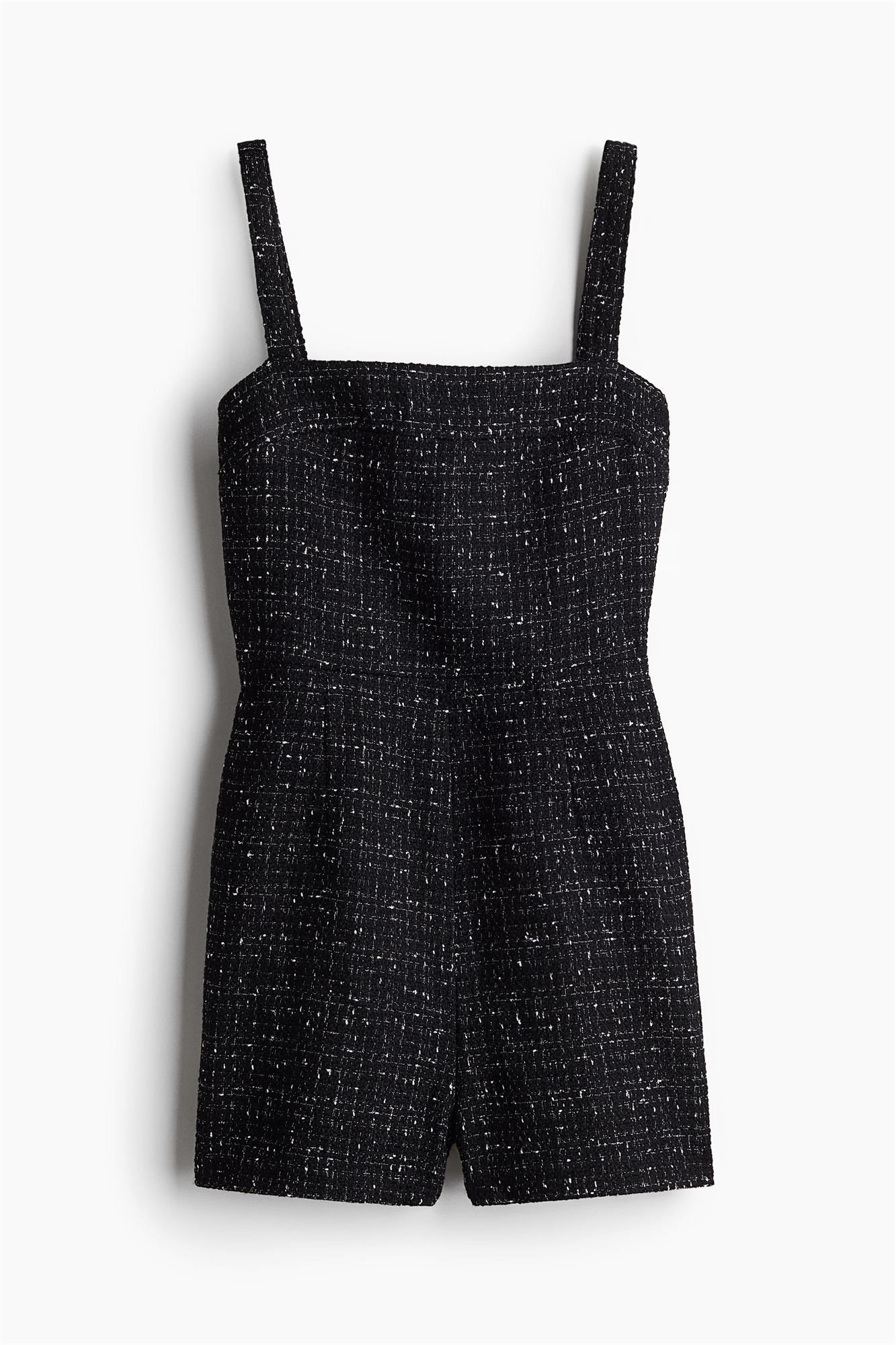 Облегающий комбинезон из тканого материала с квадратным вырезом, широкими бретелями и потайной застежкой-молнией сзади.