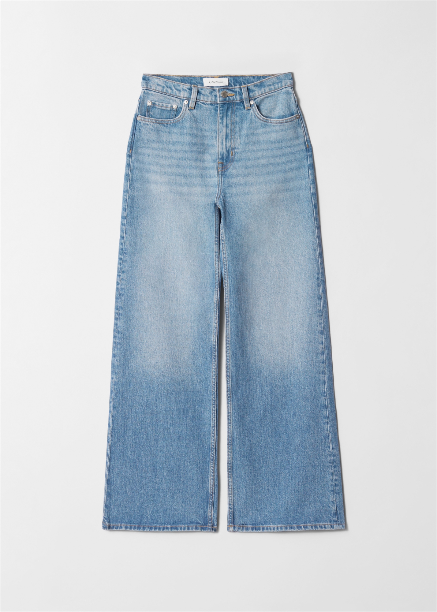Джинсы с высокой талией, длинными широкими штанинами и классической джинсовой отделкой с 5 карманами. • Regular fit • High waist • Wide legs • Comfort stretch • Ширинка на молнии и пуговице Длина по линии бедра: 80 см / 31,4 дюйма (EU 38 / UK 10 / US 6)